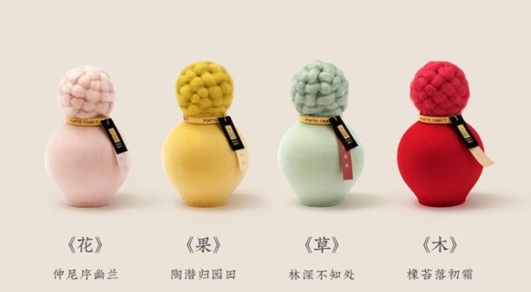 意外设计 EY-PRODUCTS 织香福禄无火香薰底部陶瓷容器,填充精油,顶部毛绒编制盖子,用作香氛摆件。