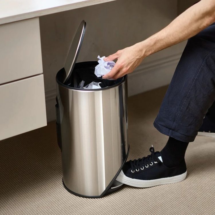 Joseph Joseph Arc 不锈钢垃圾桶设计了嵌入式踏板,脚踩开盖,带内筒,多容量可选,用于居家垃圾收集。