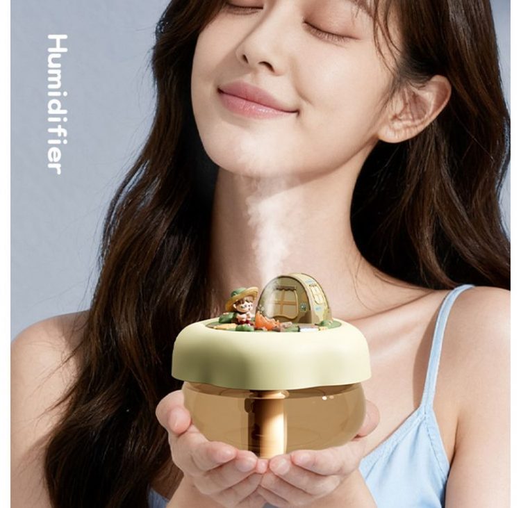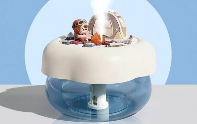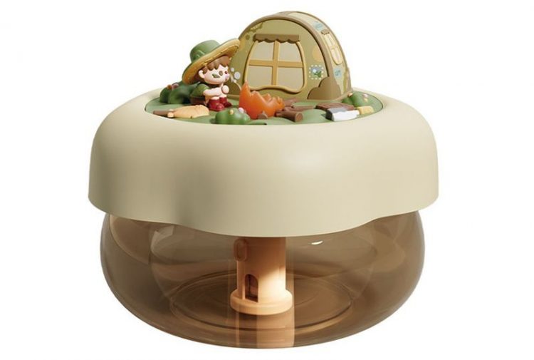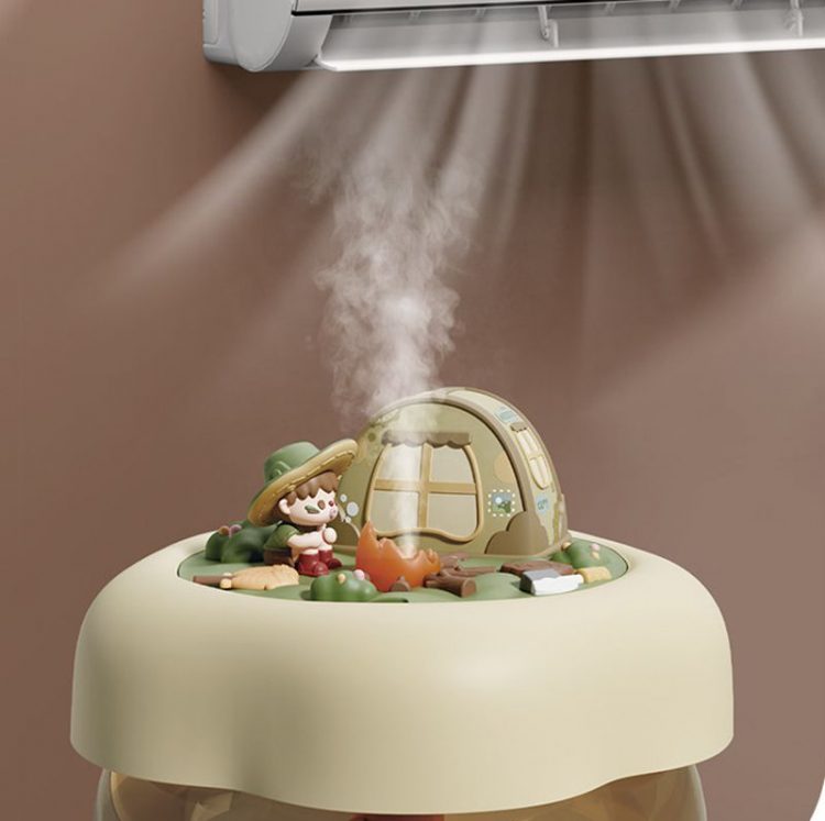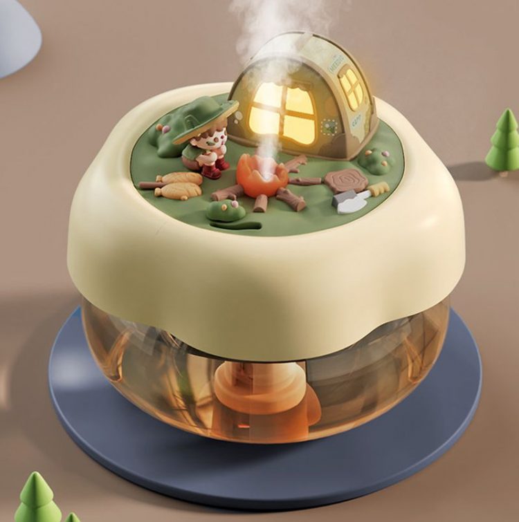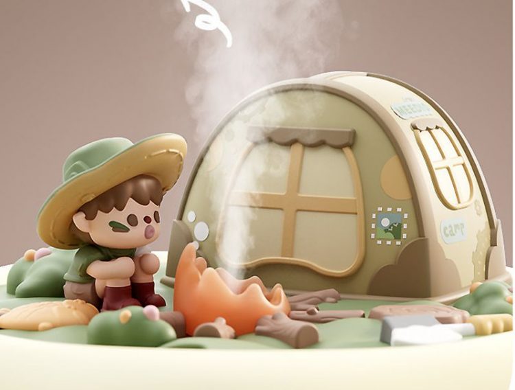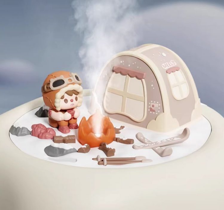 露营派对加湿器用作桌面摆件,营造露营小人微缩景观,既可用来加湿,也是一个氛围小夜灯。