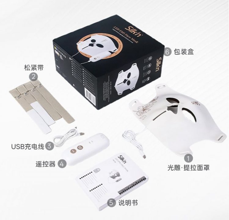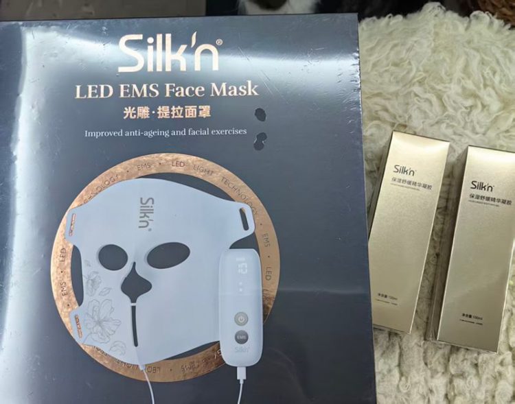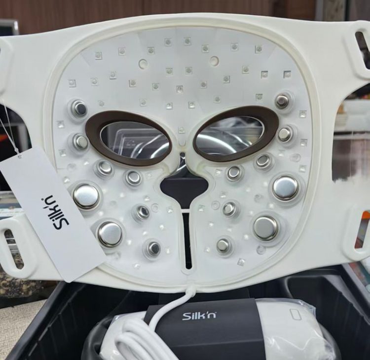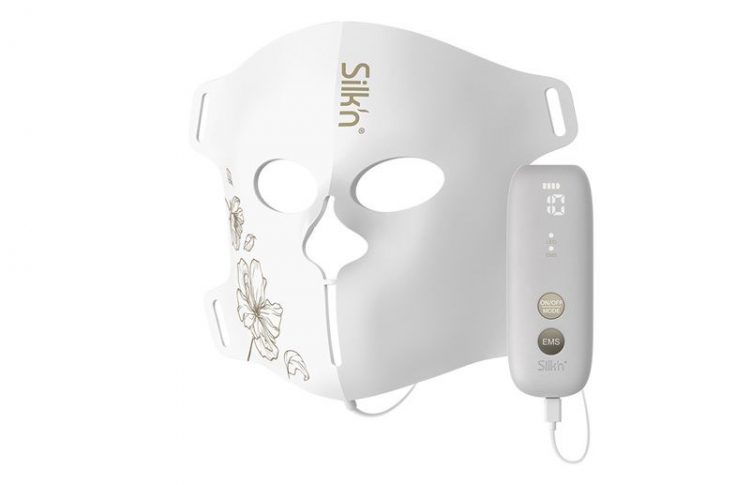 丝可 Silkn 光子美容仪面罩造型,带 EMS 微电流电极和大排灯,同时作用面部肌肤,提拉紧致,恢复活力和弹性。