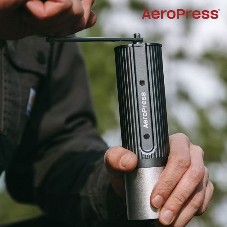 爱乐压 AeroPress 随行 E60 手摇磨豆机小巧便携,镀钛磨盘,手动磨粉,60 档精细调节,适合户外、旅行时研磨咖啡豆,冲泡现磨咖啡。