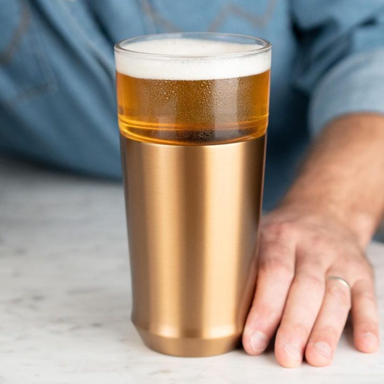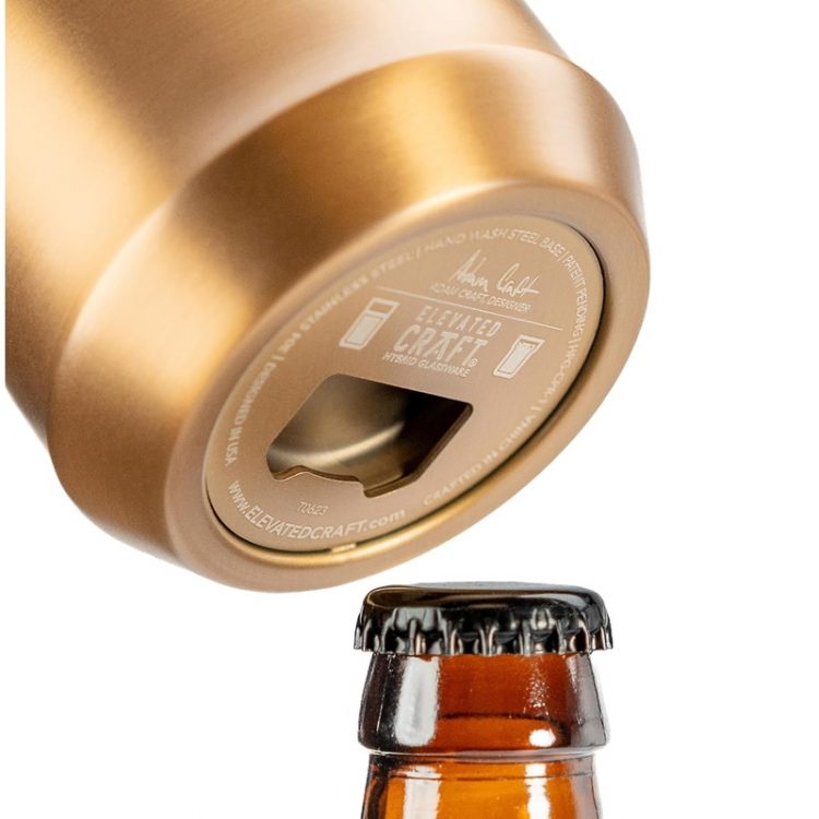 Elevated Craft Hybrid 啤酒杯时尚且耐用,下部是真空隔热不锈钢底座,内部配有可拆卸内胆玻璃杯,可放在冰箱内预冷却,用于夏日承装啤酒和冷饮,手握无冷凝水,保持饮品清爽冰凉,获得最佳口感,底部设计了开瓶器。