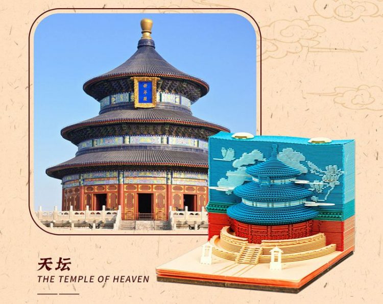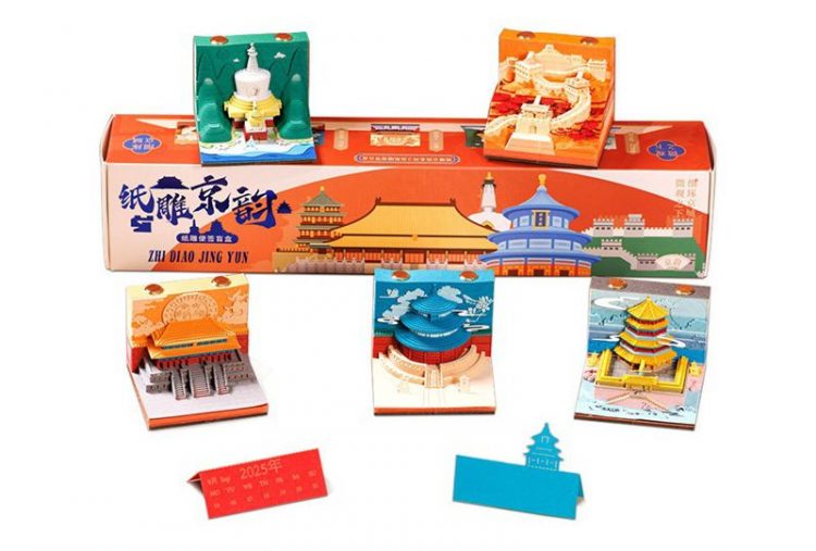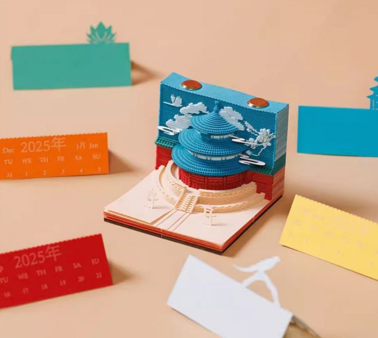京韵 3D 立体纸雕日历既是便签,也是日历,撕下来后,留下北京经典标志性景点立体造型,用作桌面摆件。