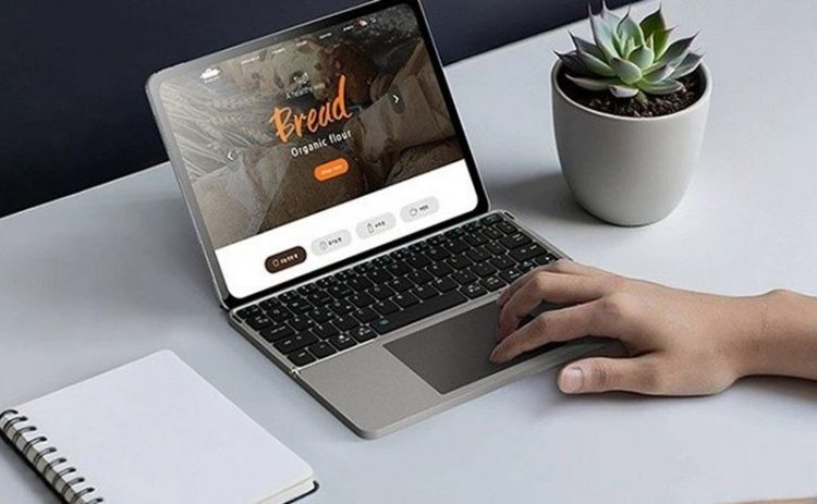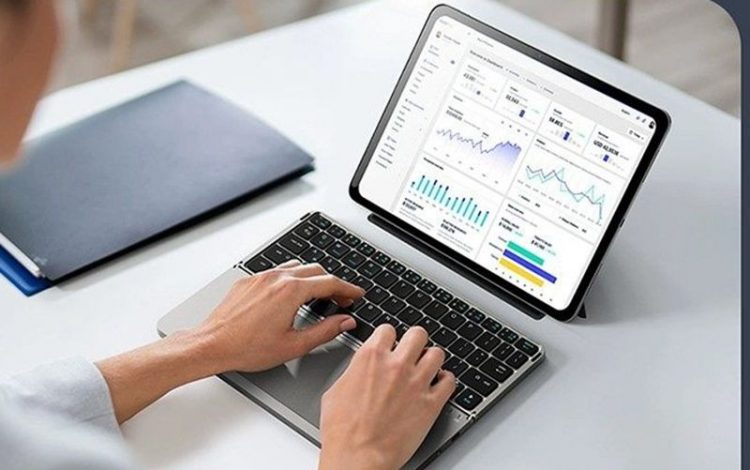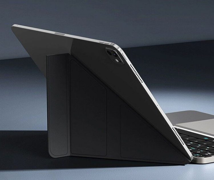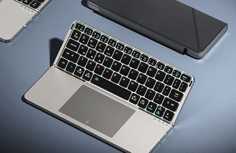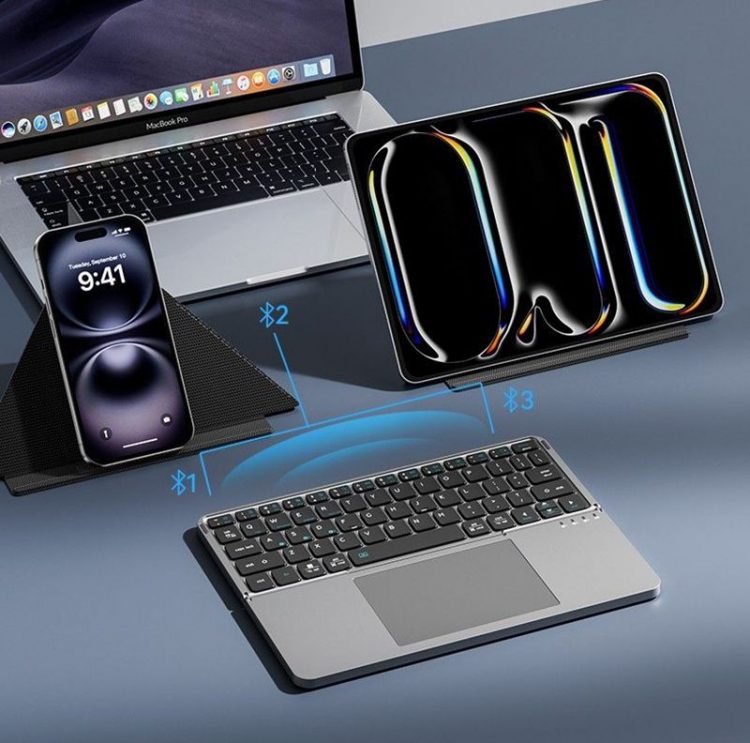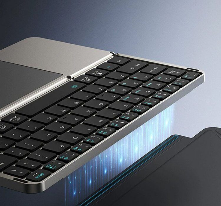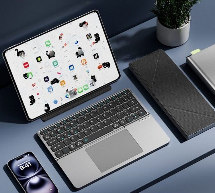 触控板蓝牙平板键盘磁吸折叠收纳,带支架,用作手机、平板电脑输入、操控。
