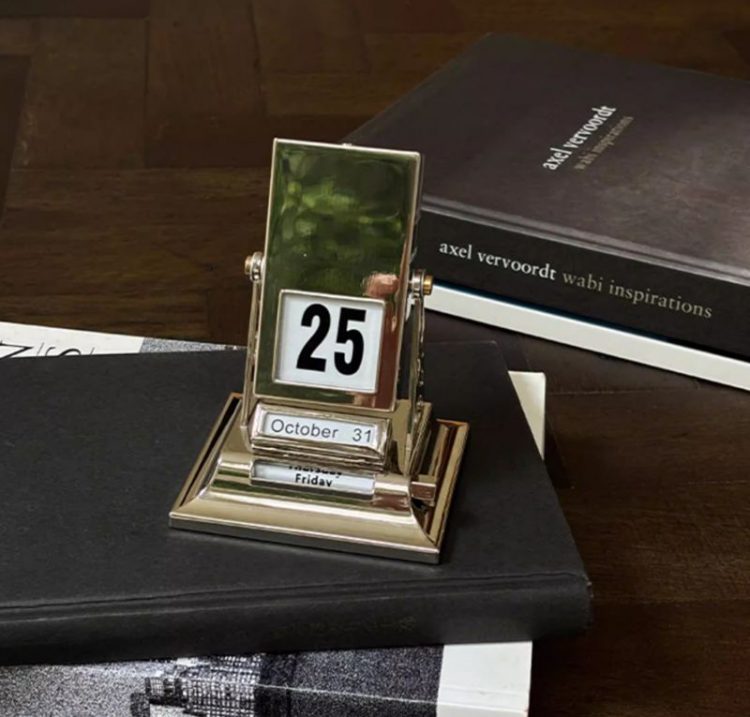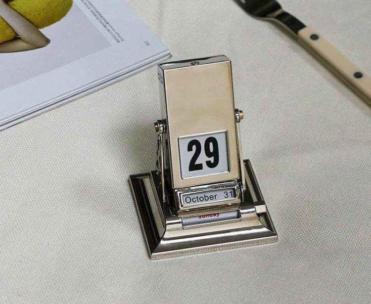 翻转万年历复古造型,机械翻转, 用作桌面摆件和日历。