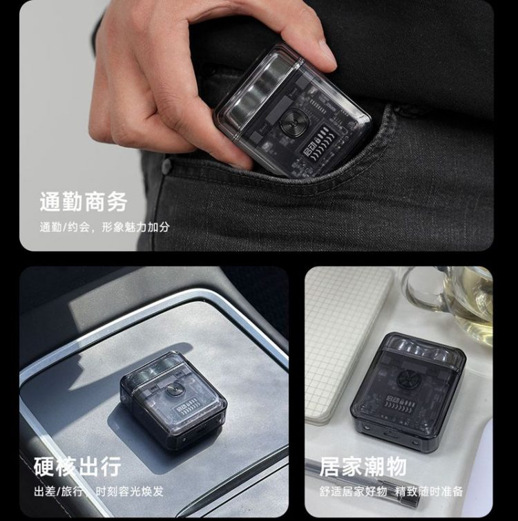 TS086 电动剃须刀透明机身,小巧便携,高速电机,双弧面刀网,快速处理胡须。
