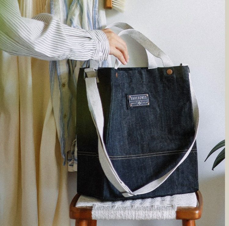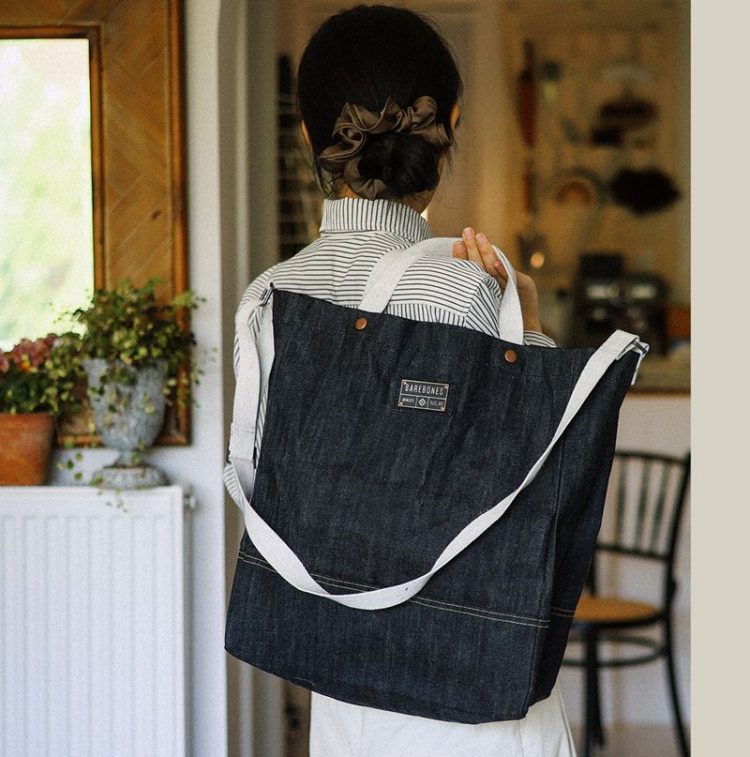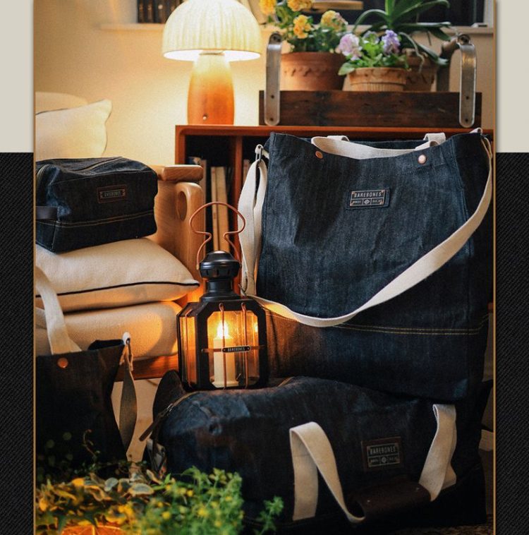 北邦 BAREBONES 牛仔系列托特包采用蜡帆布面料,大容量,可手提、单肩、斜跨,方便日常通勤使用。