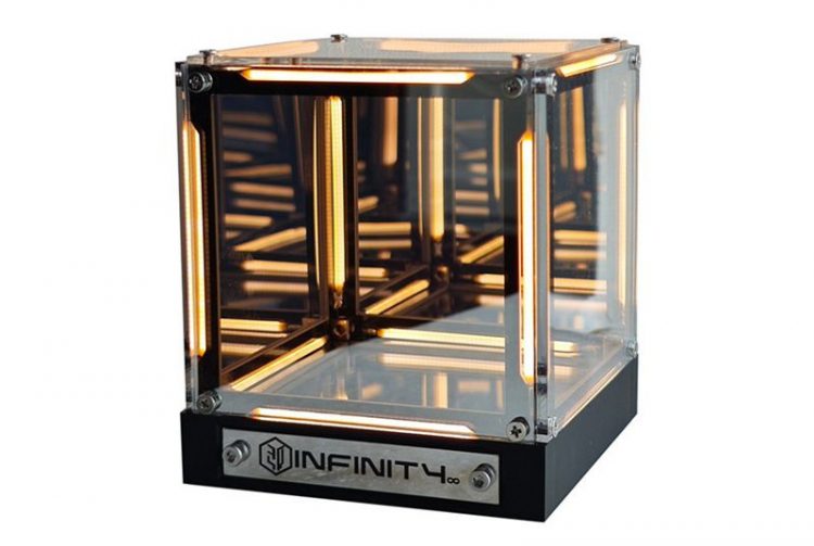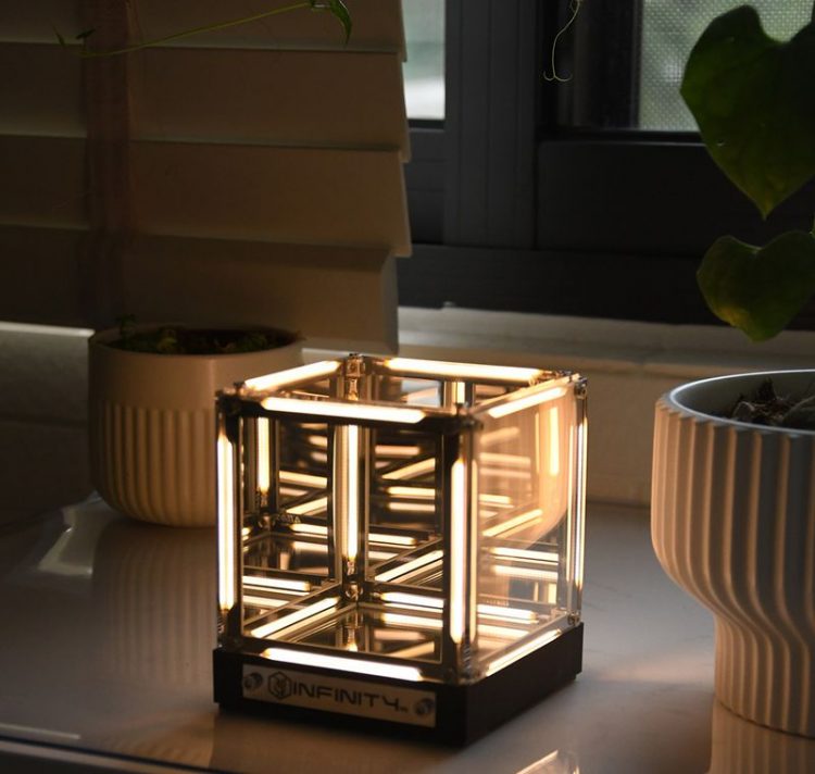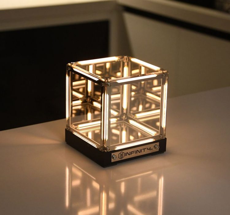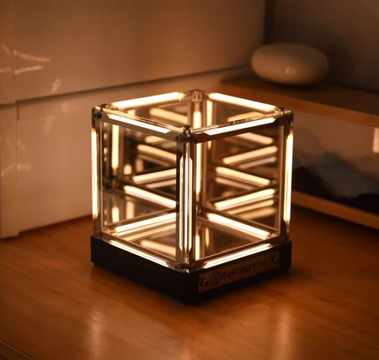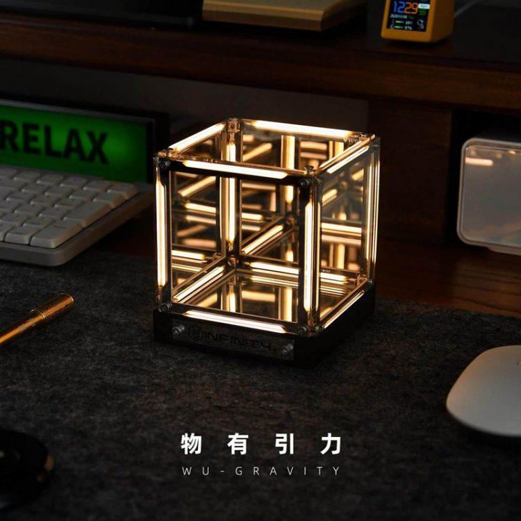 无限空间氛围灯用作桌面摆件,点亮后,灯光无限循环。