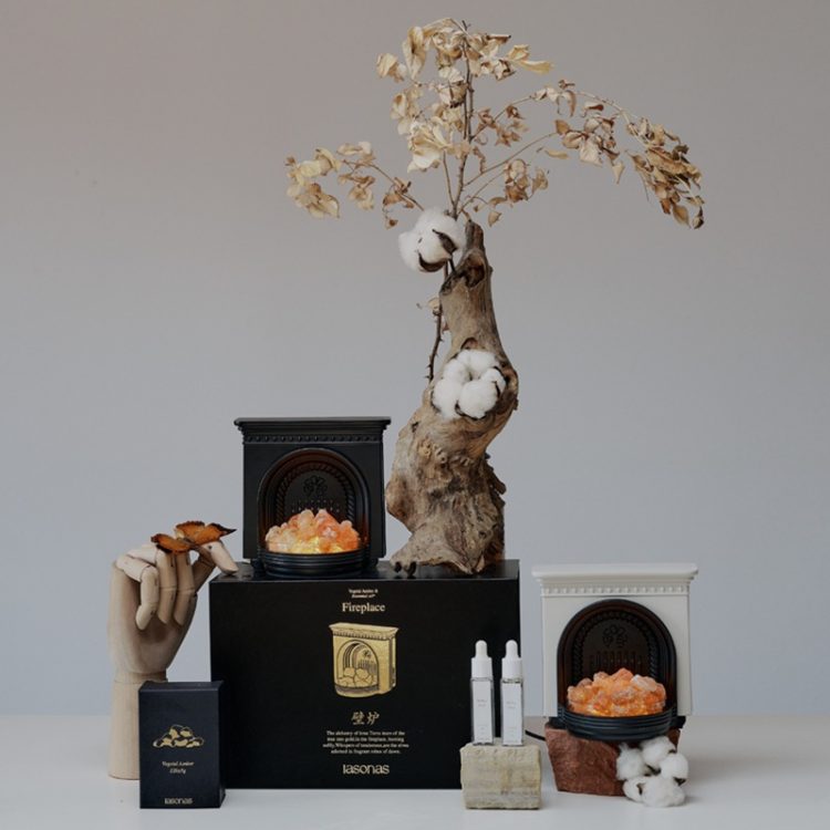 同分异构 Iasonas 壁炉晶石香薰礼盒仿造壁炉造型,插电点亮,用作摆件氛围灯,同时也是精油扩香器。