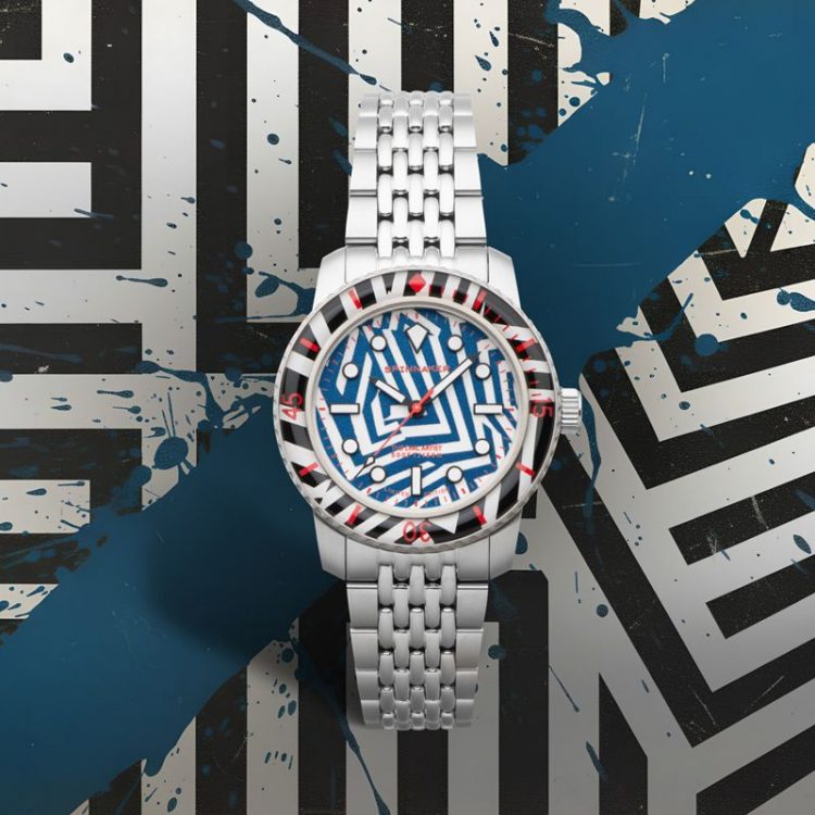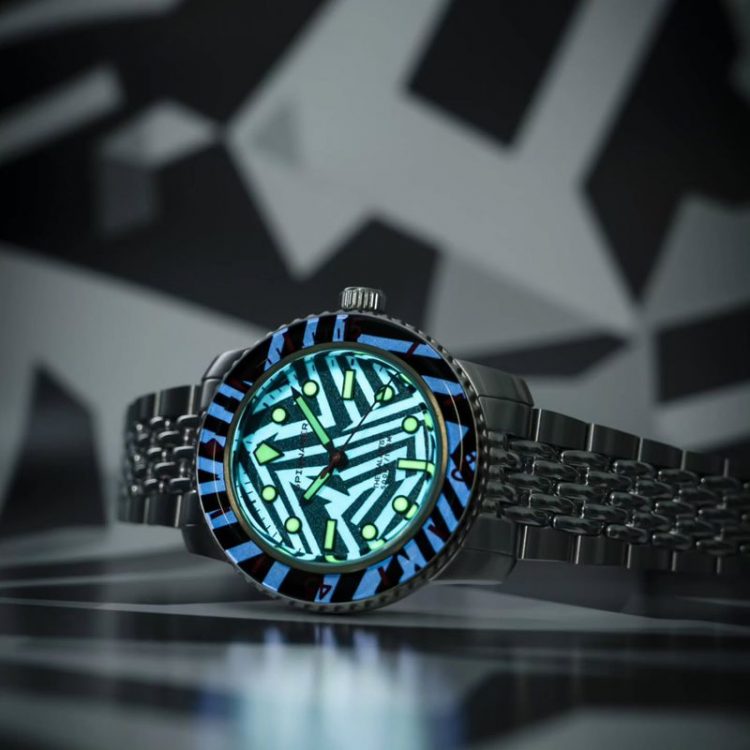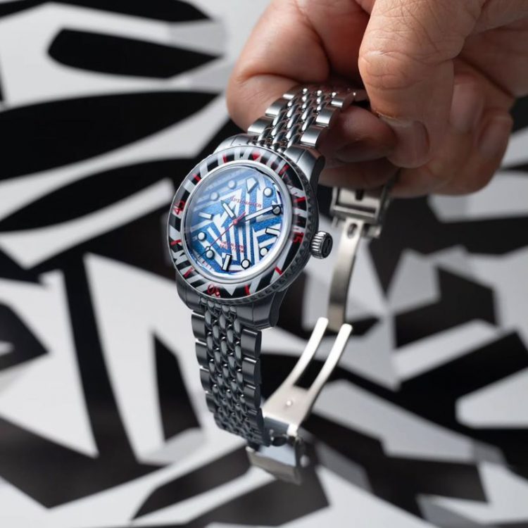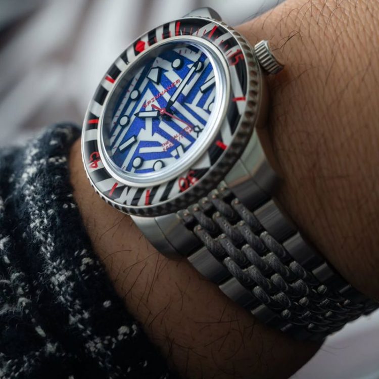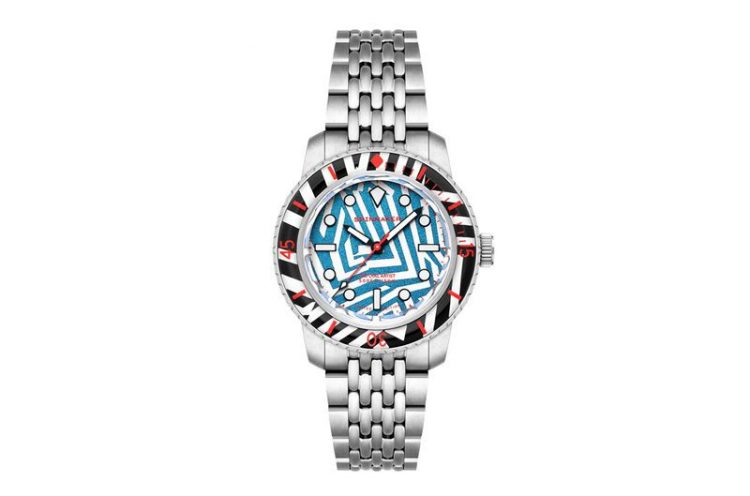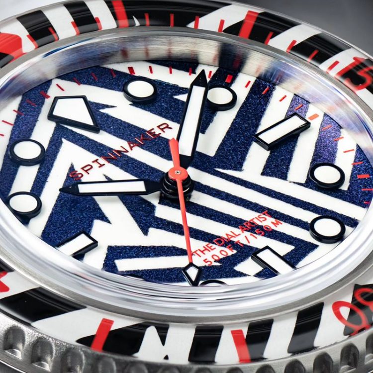 三角帆 SPINNAKER The Dial Artist 自动机械表由艺术家 Chris Alexander 手工绘制,迷彩几何图案表盘,限量发售。