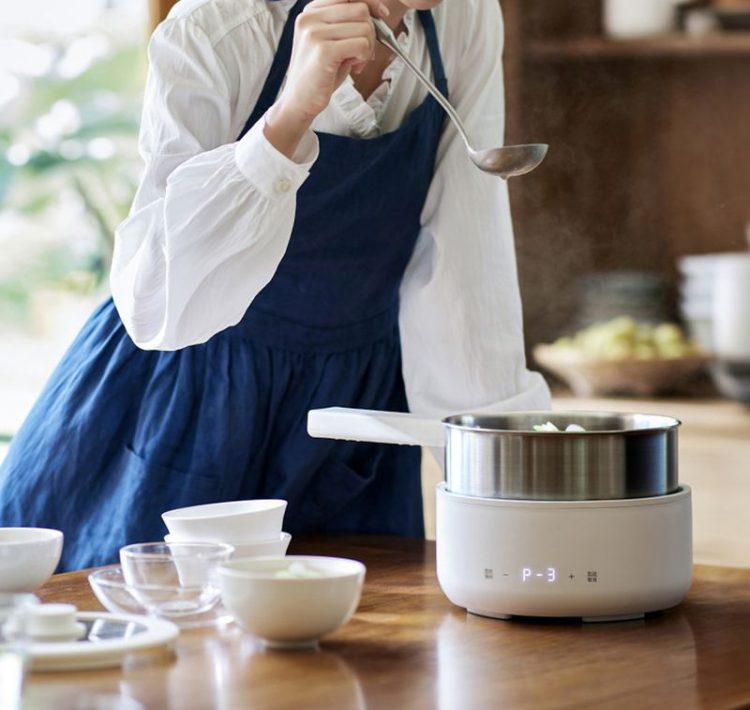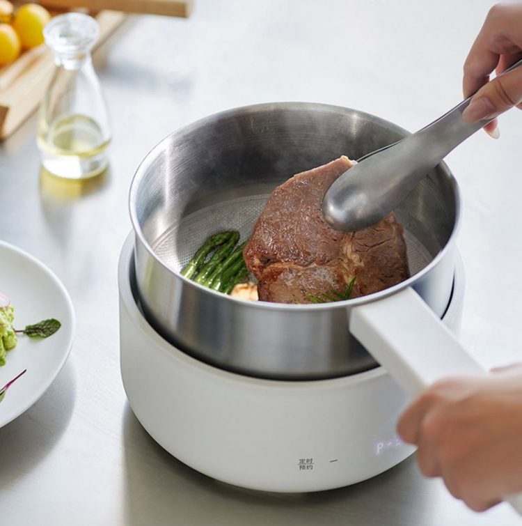 IH 电煮锅电磁发热,分体式不锈钢锅体,可煎煮烹炒,也可加热其他锅具。