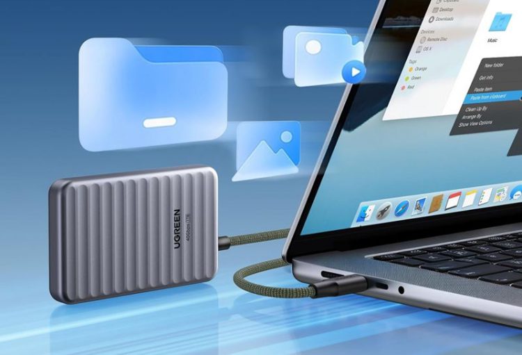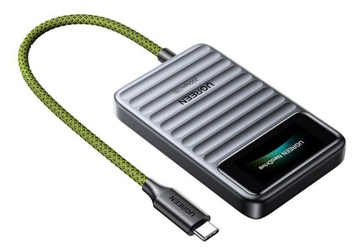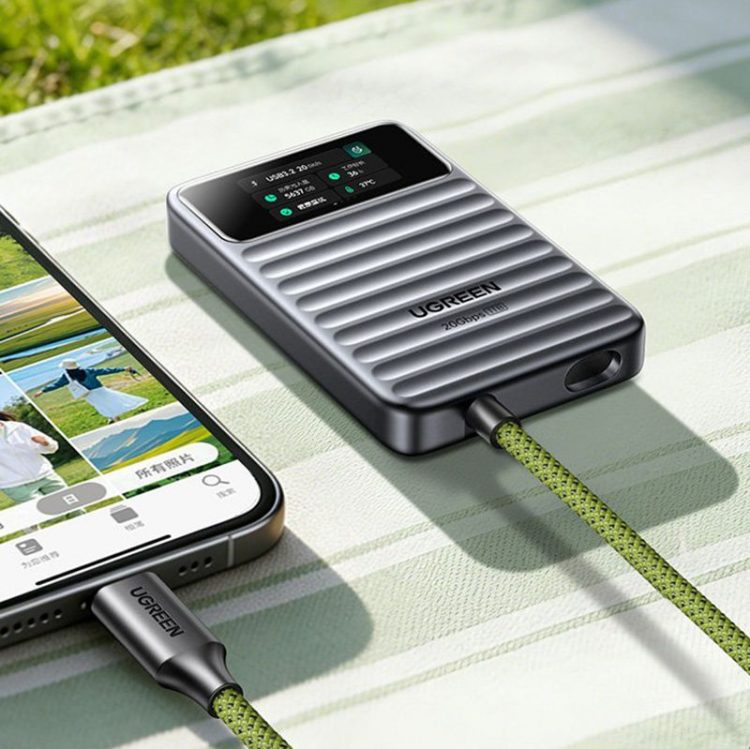 绿联 UGreen NeoDrive Go 系列移动固态硬盘自带数据线、显示屏,实时显示传输速度,用于移动存储,适合手机、笔记本电脑、数码相机使用。