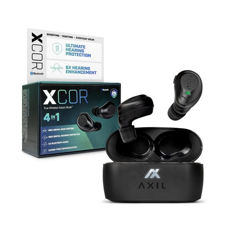 AXIL XCOR PRO 真无线蓝牙耳机入耳式佩戴,触控操作,支持隔音降噪,防尘防水,保护听力,自动过滤高频/低频冲击噪音(例如射击声),提升中频人声音量,可在高噪音环境与人对话,欣赏音乐、接听电话,适合运动员射击训练或者嘈杂工厂、工地环境使用。