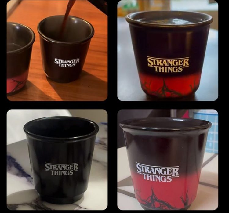 比乐蒂 BIALETTI 和剧集《怪奇物语 Stranger Things》 联名咖啡杯,采用影视元素图案,温感变色杯壁图案,适合美剧迷收藏购买。