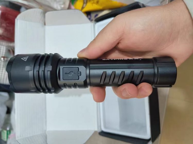 苍龙二代强光手电筒充电使用,小型便携,防水长续航,支持变焦,适合户外使用。