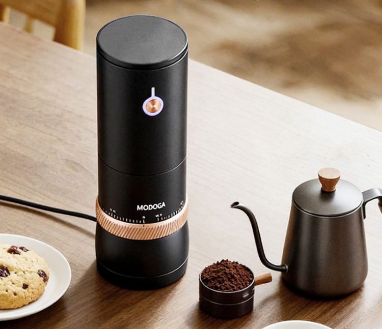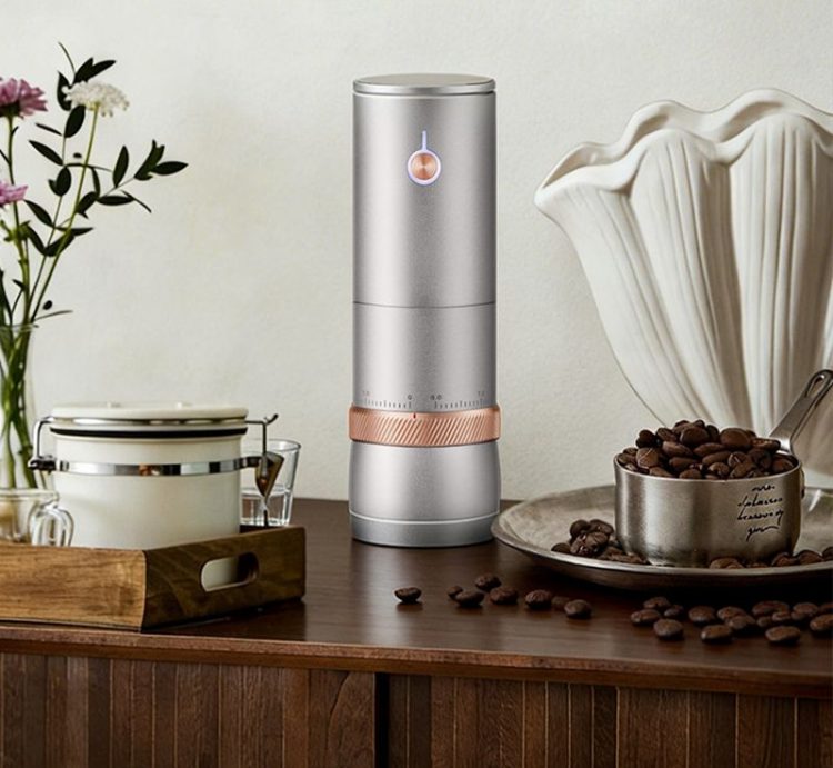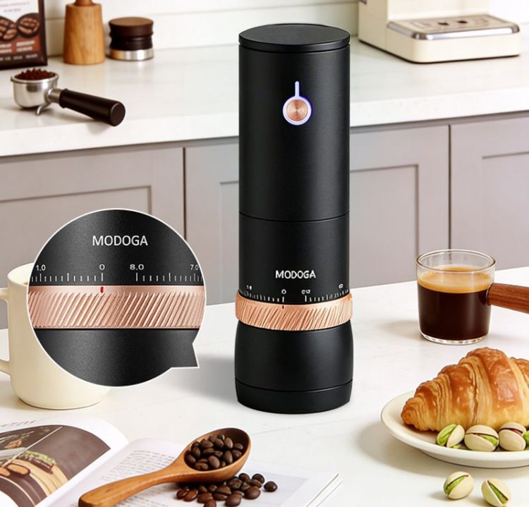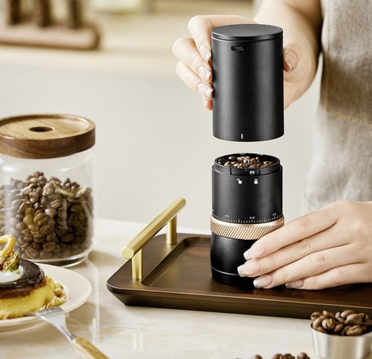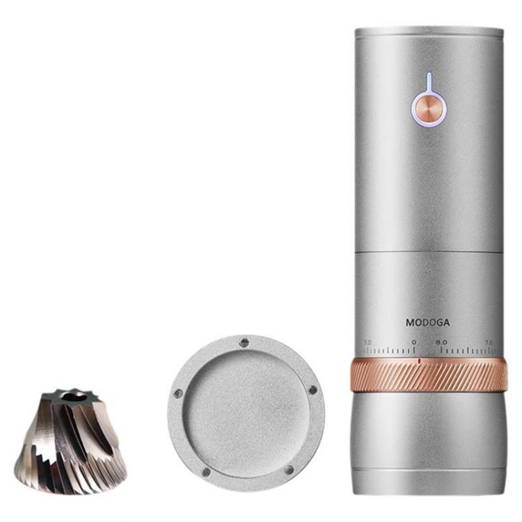 电动磨豆机铝制外壳,内置锂电,无线使用,80 档精细研磨,用于现磨手冲意式咖啡豆。