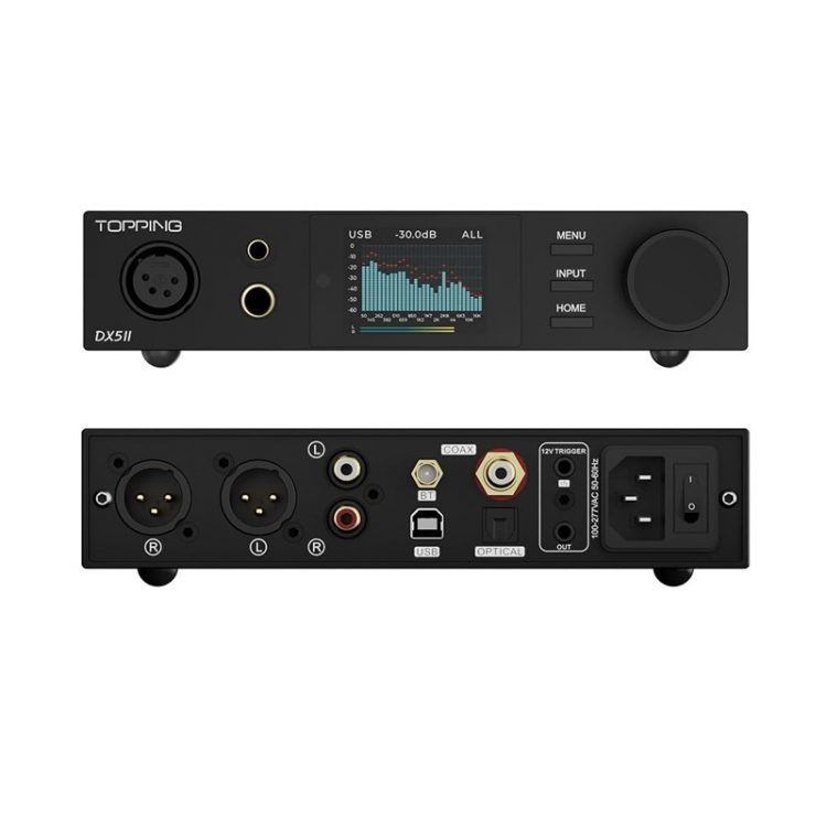 拓品 TOPPING DX5II 解码耳放是全新高性能桌面解码耳放一体机,采用 ESS 最新的第四代 Hyperstream 架构晶片,X-Hybrid 耳放架构,输出功率相比前代大幅提升,足以应对大多数高阻抗大耳或低灵敏度的平板耳机,实现 HiFi 音乐播放。