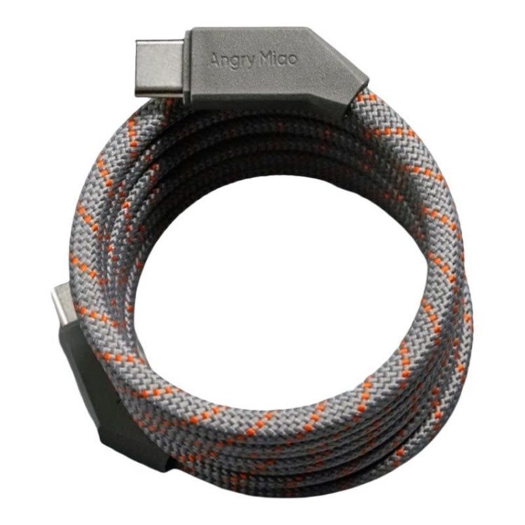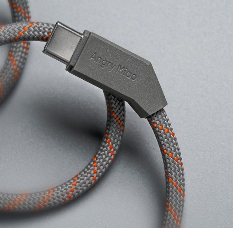 怒喵 AngryMiao 歪歪数据线歪充电头设计,磁吸线体,收纳平整,支持 100W 快充,方便携带给手机、移动设备充电。