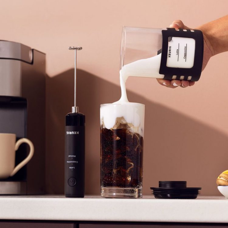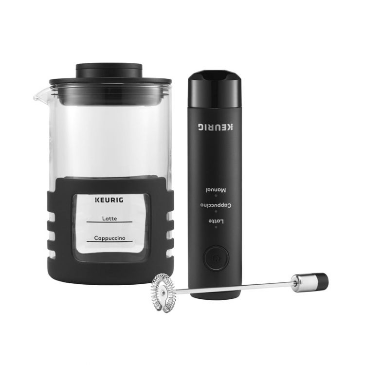 Keurig SimpleCafe 便携电动打奶泡机内置锂电池,充电使用,配备奶泡杯,杯身带有刻度线,只需把牛奶倒入杯中至所需刻度,然后将奶泡器放入杯中,切换设置并启动,即可将牛奶搅打成轻盈丝滑的奶泡,用来制作拿铁、卡布奇诺等特色咖啡饮品。支持预设时间,也提供自定义手动设置。