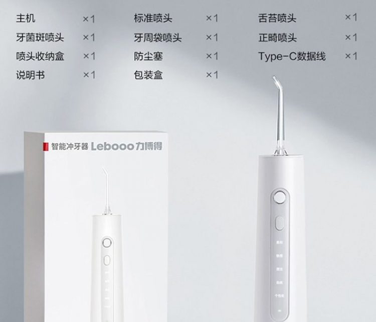 力博得 Lebooo 冲牙器大水箱,五档清洁模式,多种配套喷头,脉冲出水,带智能功能,支持冲牙教学。