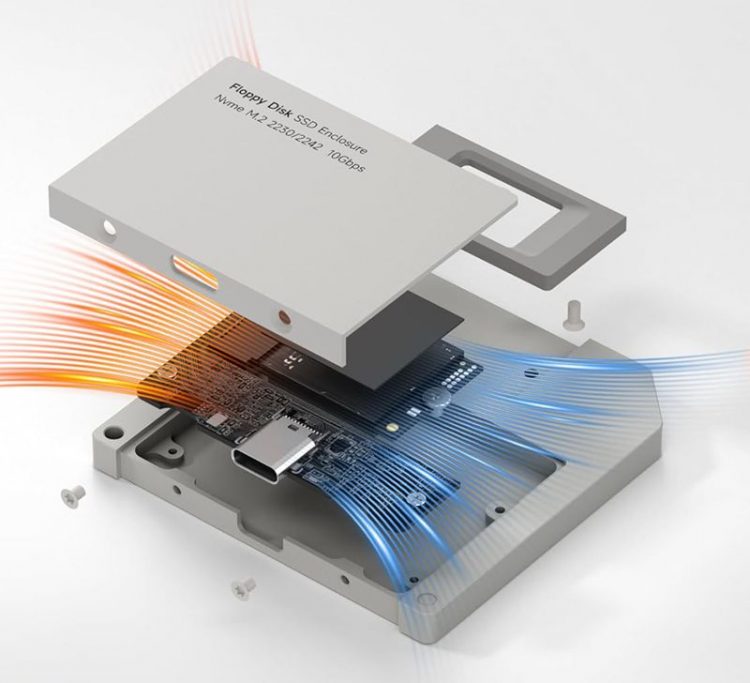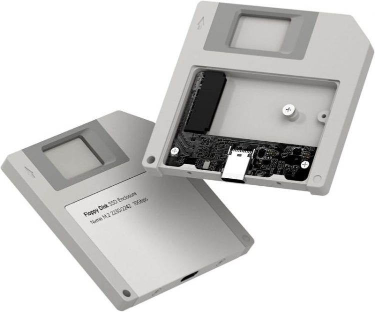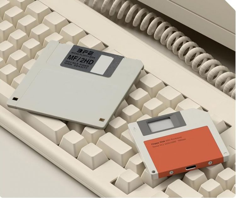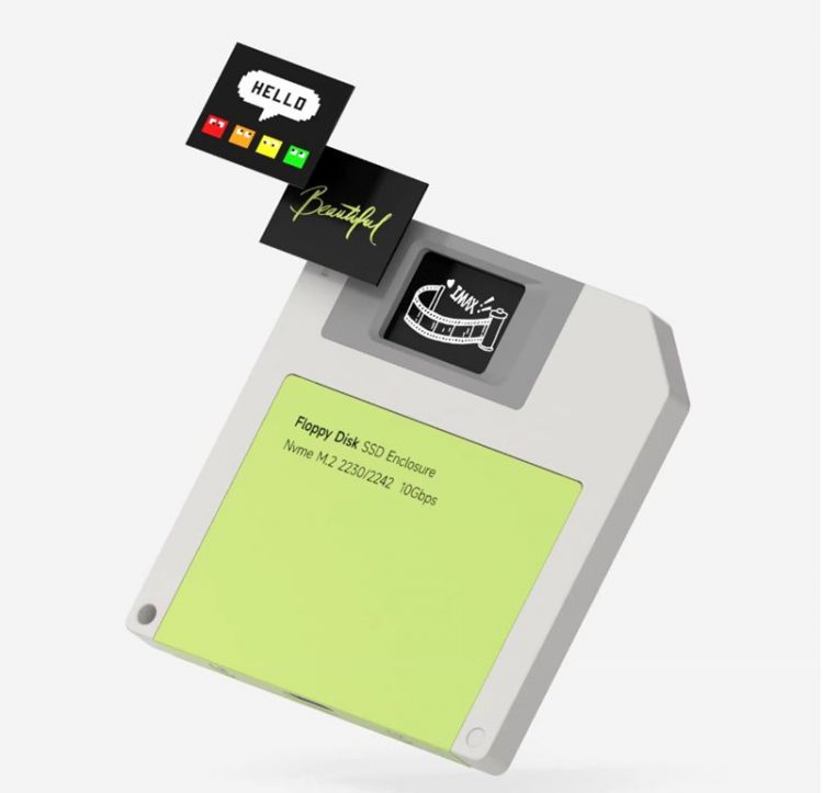 海备思 Hagibis 软盘造型固态硬盘盒是一款主打复古情怀与便携性的创意数码配件,它完美复刻了经典 3.5 英寸软盘的外观,顶部设有可 DIY 标签的透明窗口,支持 M.2 NVMe 协议固态硬盘,适合追求个性化桌面美学的用户。