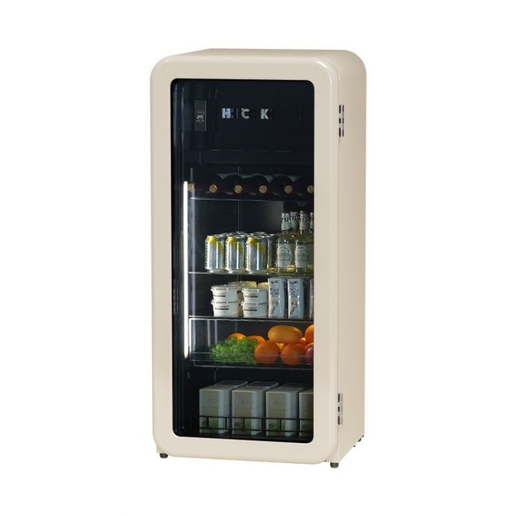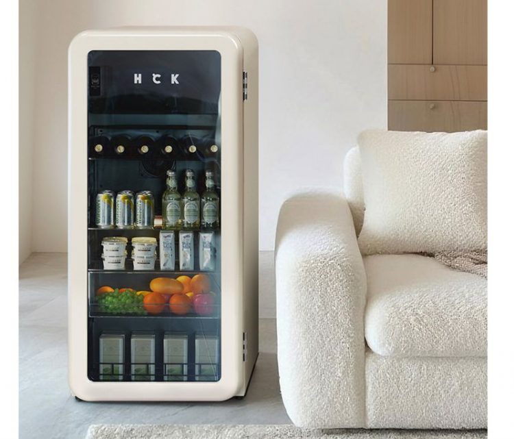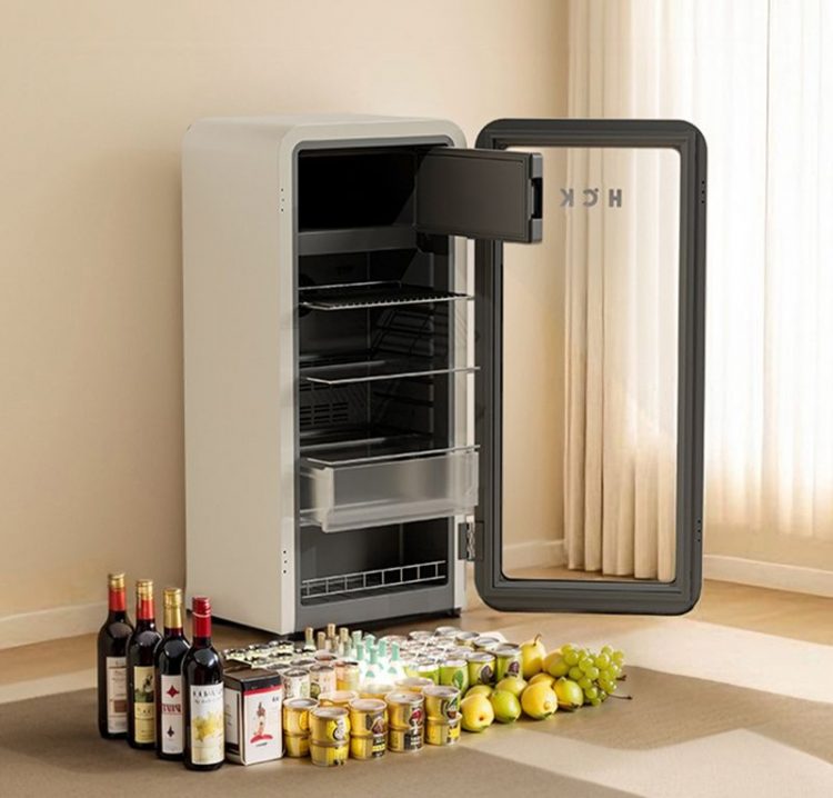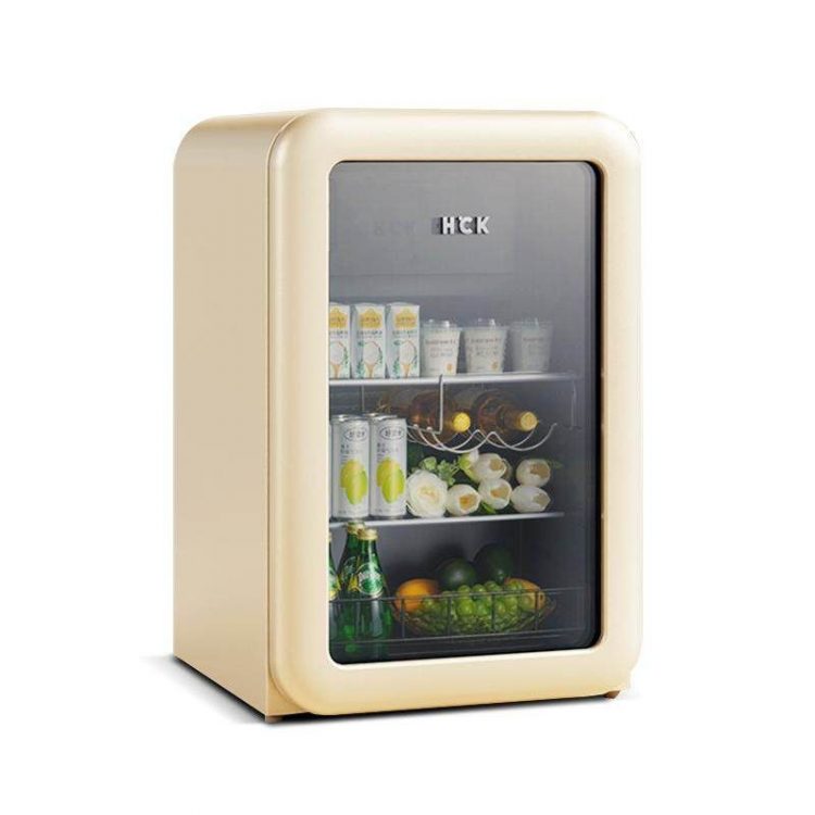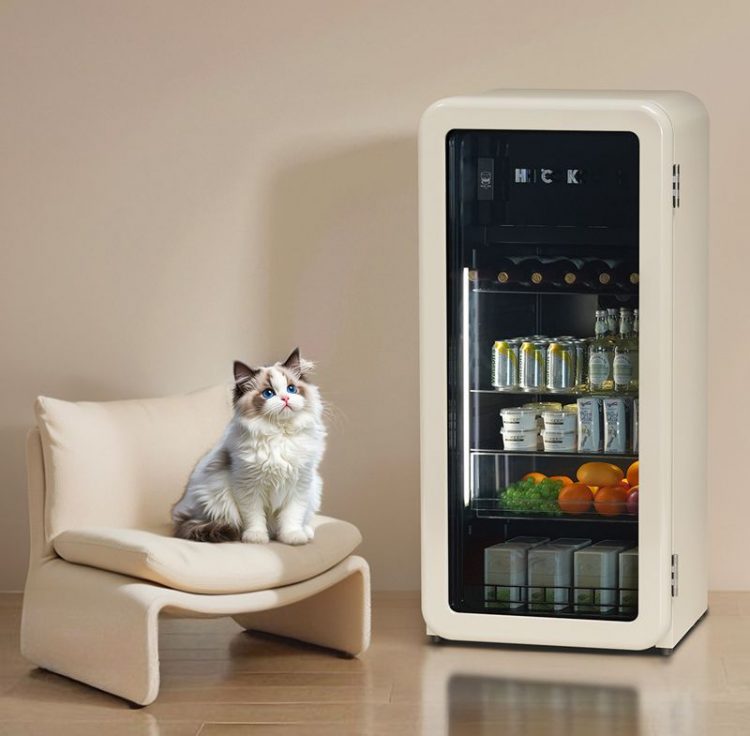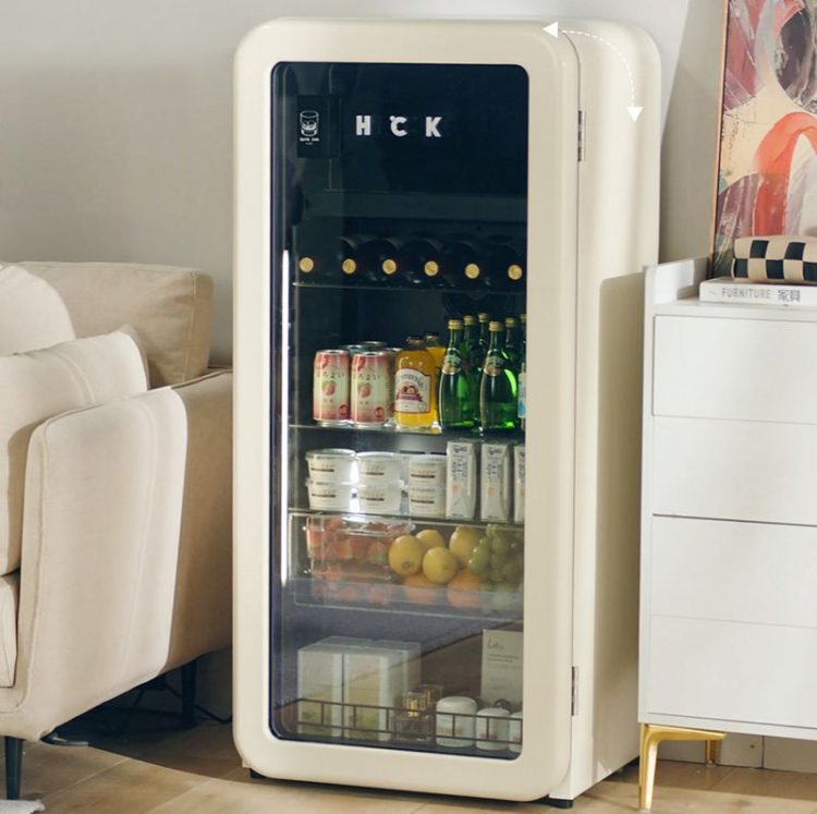 墩墩吧是一款小型复古冰箱,软萌圆弧造型,智能双控,透明箱门,用于收纳冷饮、饮料。