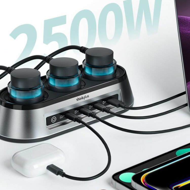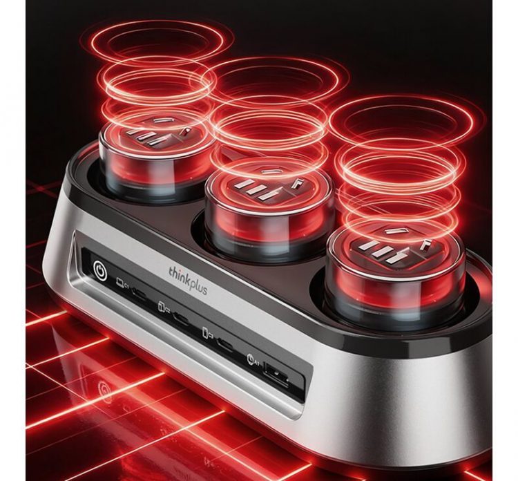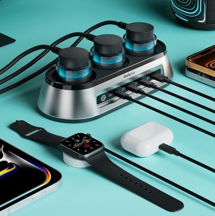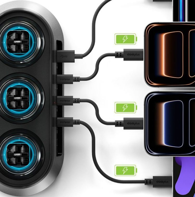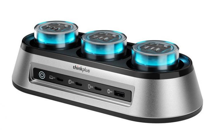 联想 ThinkPlus 锋行者桌面充电站采用氮化镓技术,提供多个 Type-C 充电口,支持 PD 快充,也是桌面插线板,带呼吸灯,让办公设备更有序。