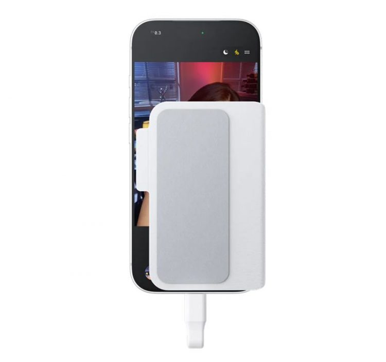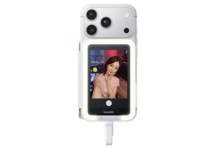 影石 Insta360 Snap 手机自拍屏磁吸固定在手机背面,即插即用高清显示,利用画质更好的主镜头进行自拍并看到实时画面。