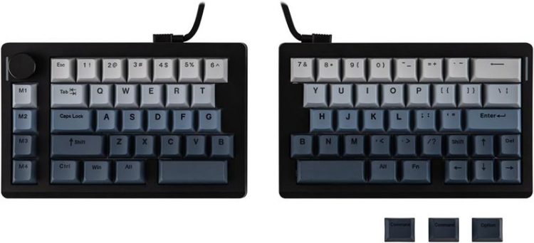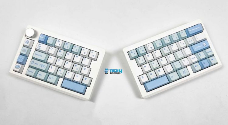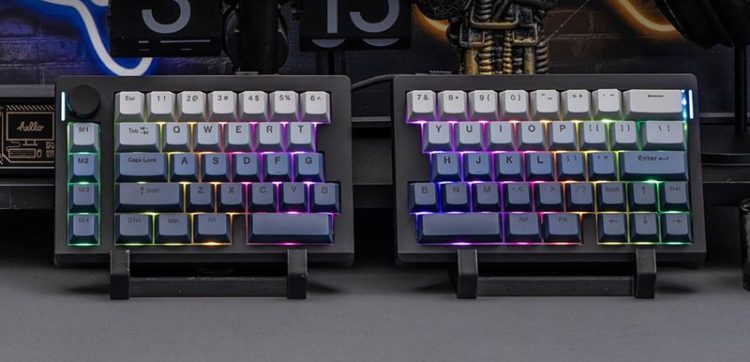 EPOMAKER Split70 机械键盘三模连接设备, 70% 布局,分体式人体工学设计,减少手腕和前臂的压力,提供更自然的打字姿势。支持磁吸固定吸附在一起。