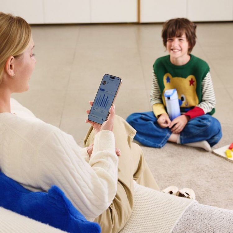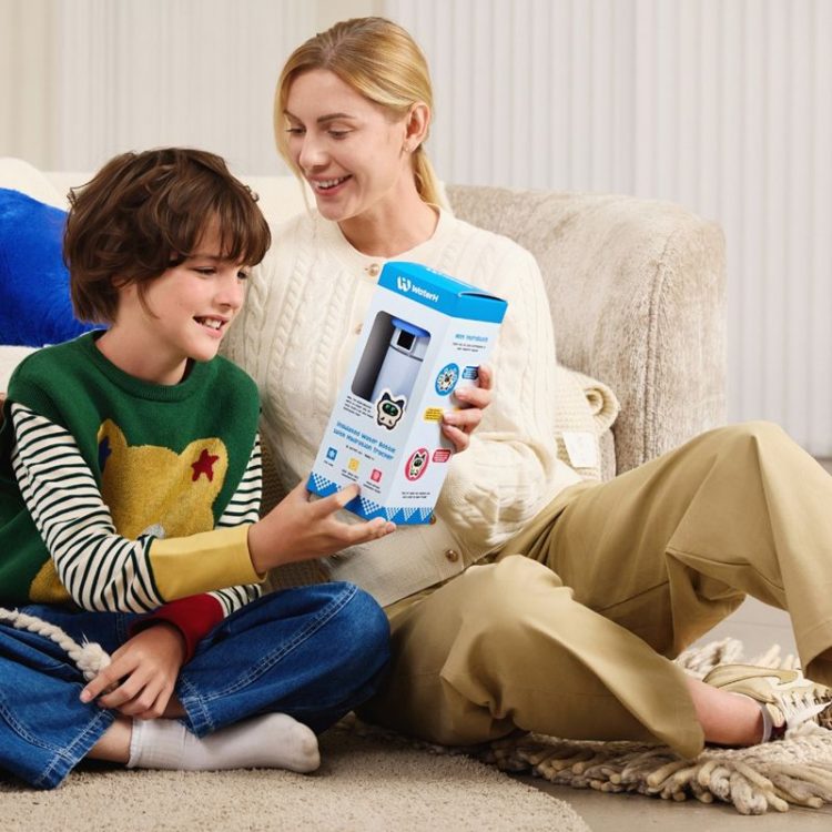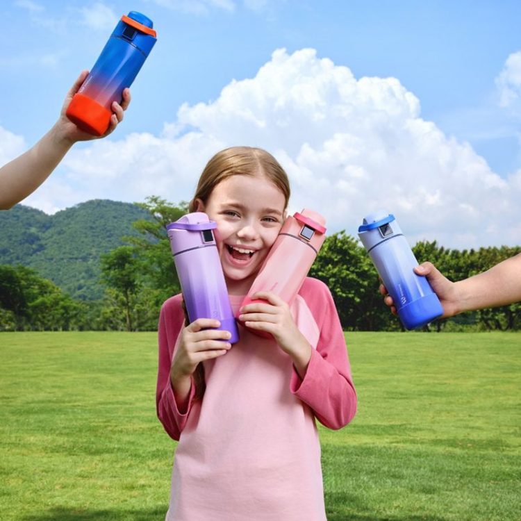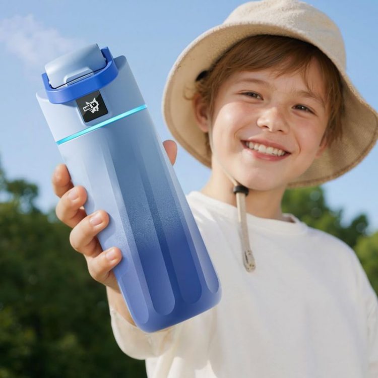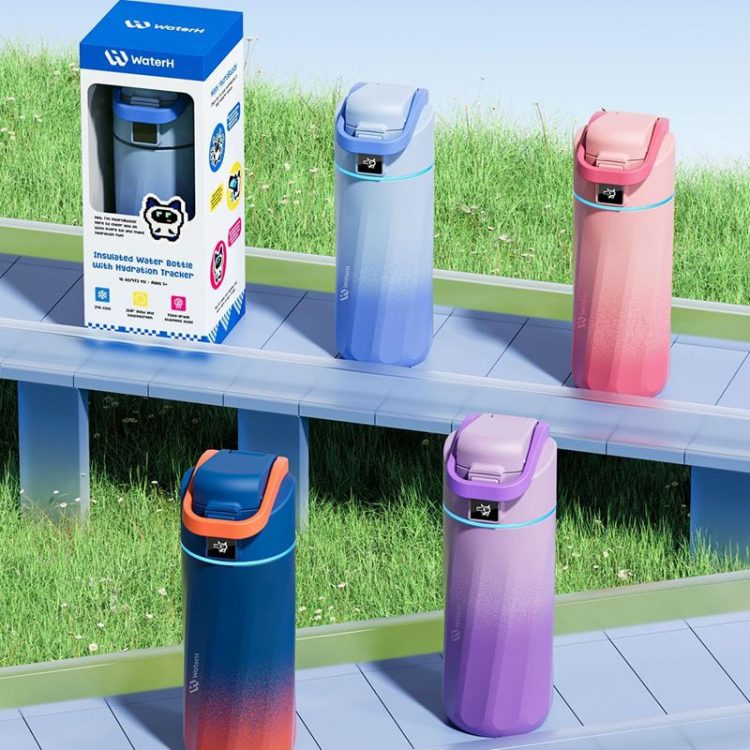 WaterH BOOST 智能儿童水瓶防漏设计,双层真空不锈钢保温保冷,专为儿童小手设计,设计了符合人体工学的防滑提手,配备一键式按钮开盖,支持喝水提醒,在 App 上设定每日饮水目标、打开自动提醒,可实时追踪饮水量,通过环形 LED 灯带闪灯,培养孩子的健康饮水习惯,夹着也可随时了解孩子的补水情况。包装上设计了 “Boost Buddy” 卡通形象。孩子们可以剪下这些卡通卡片,DIY 手工组装成独一无二的冰箱贴。