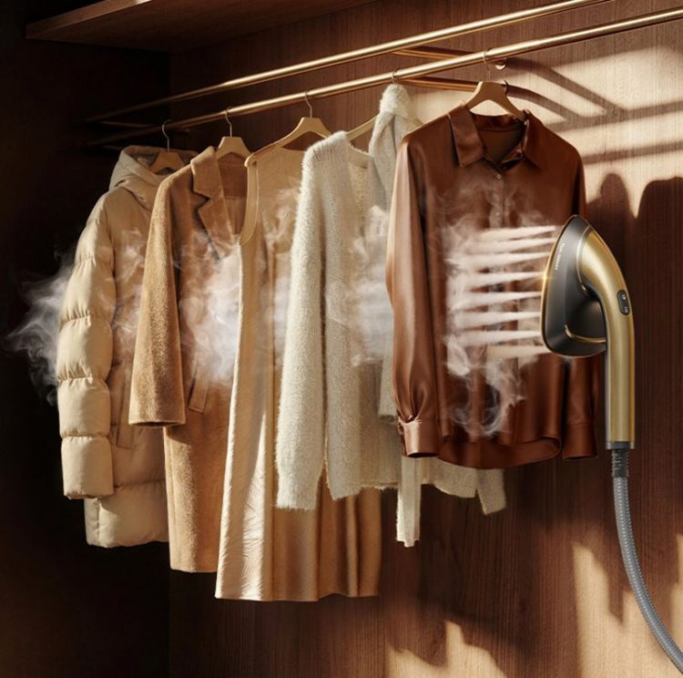 挂烫机生成水光离子,在熨烫衣服的同时,焕新衣料纤维,回复光泽,柔软顺滑。