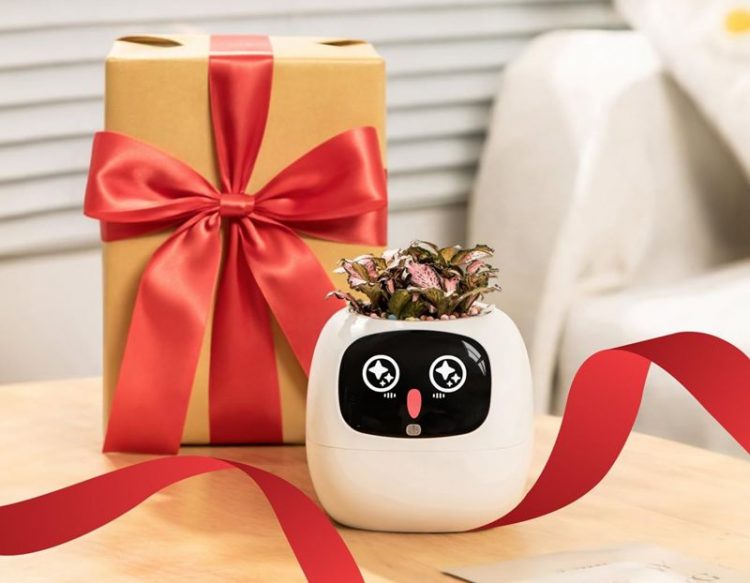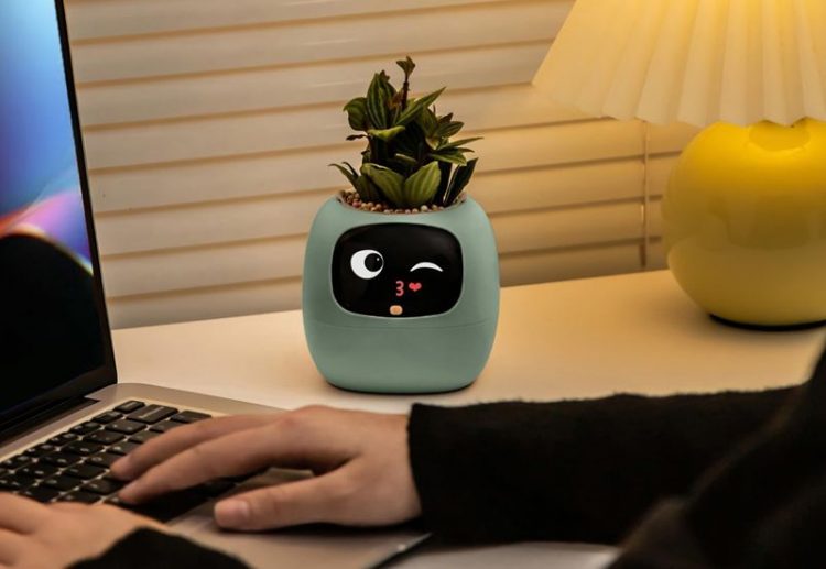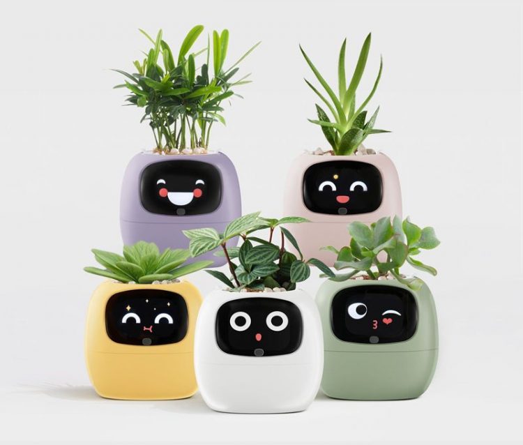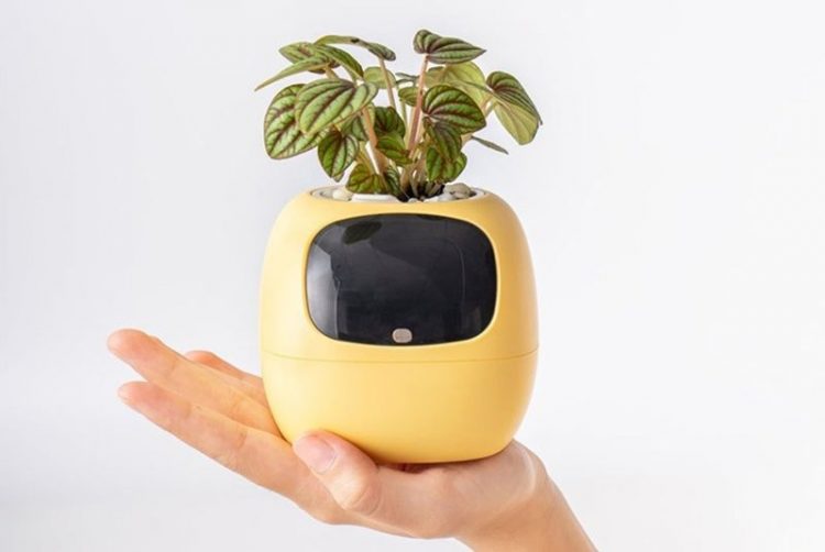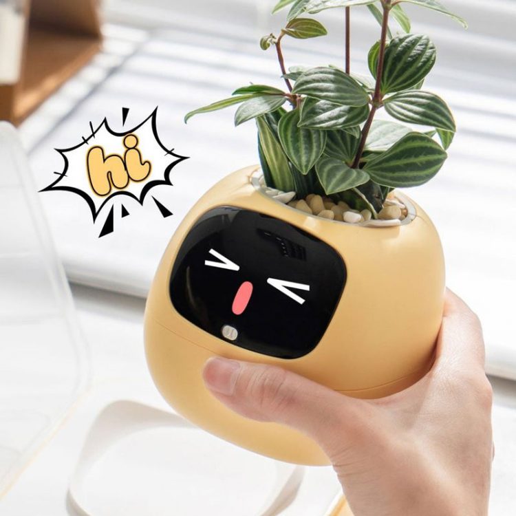 岸杉 PLANTSIO IVY 智能花盆正面嵌有一块 LCD 屏幕,当植物缺水、光照不足、温度过高或过低时,它会显示出委屈、干渴、痛苦等表情;当植物状态良好时,它会表现得非常开心,让原本“沉默”的植物表达自己的需求,还可通过抚摸、拍打和花盆精灵互动。