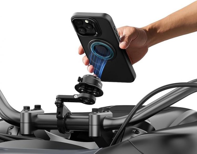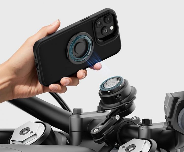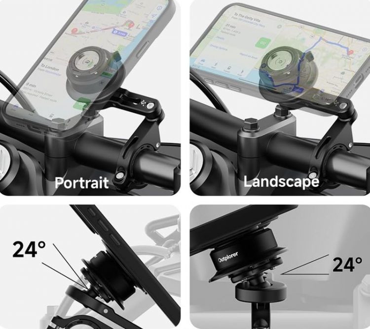 拓境者 Outplore 手机支架专为摩托车和户外骑行设计,采用空气减震技术和磁吸快装系统,取放方便且保护手机,防止因长时间骑行导致震坏。