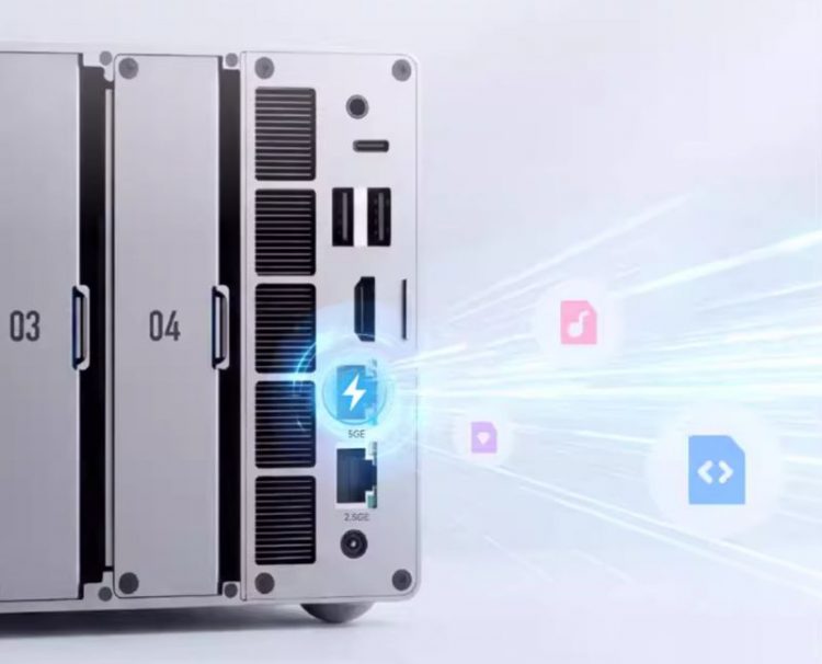 飞牛 EVO4 NAS 家庭网络存储采用了全铝合金外壳,提升整体质感,增强被动散热能力,四盘位结构: 支持四块 3.5 英寸/2.5 英寸 SATA 硬盘,同时内部配有 M.2 NVMe 插槽用于高速缓存或存储空间, 搭载了高性能处理器,能够流畅处理 4K 视频实时转码、大规模照片索引及 AI 识别任务,用作家庭私有云存储。