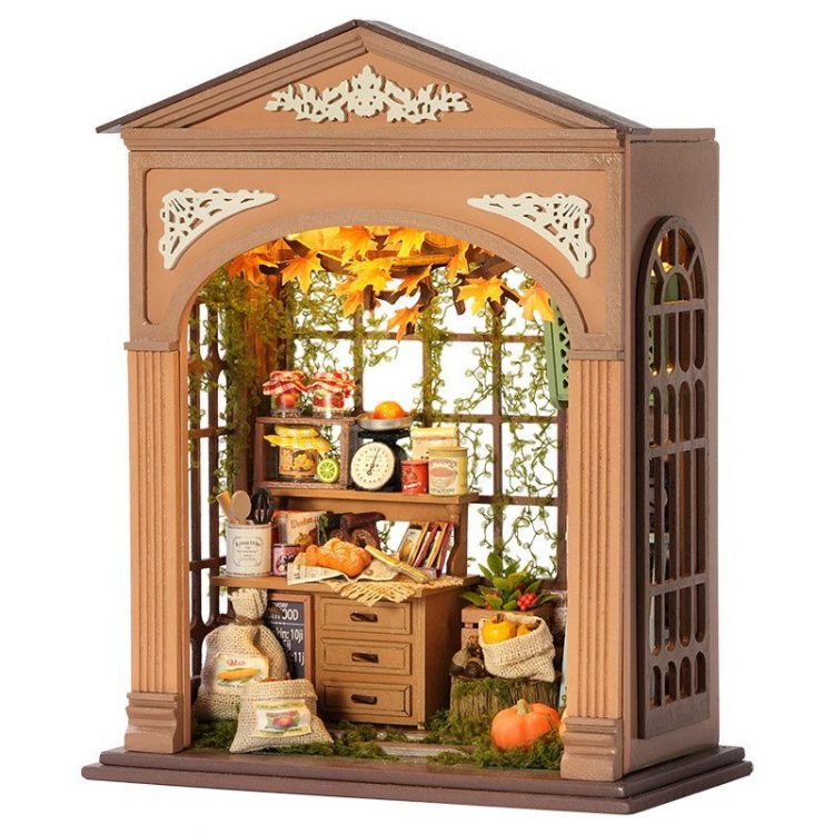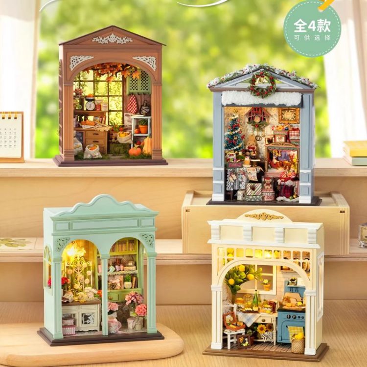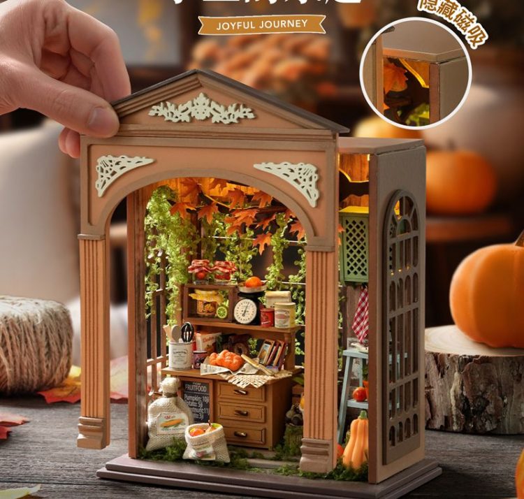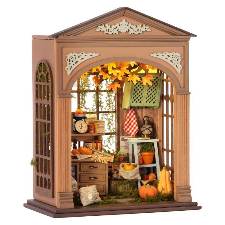 智趣屋 CUTE ROOM DIY 丰收季迷你木质小屋是一款需要手工拼装的建筑模型木质玩具,四款可选,完成后,带灯光,用作桌面摆件。