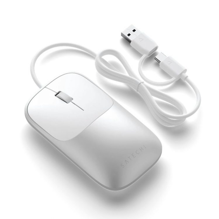 Satechi Slim LX 有线鼠标铝合金材质,金属滚轮,对称设计,纤薄机身,静音点击,采用集成式 USB-C 有线连接(线长 1.2 米,带 USB-C 转 USB-A 的适配器),即插即用,兼容 Mac 和 PC 电脑,左右手通用,握感轻薄。