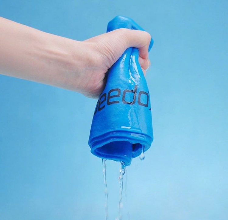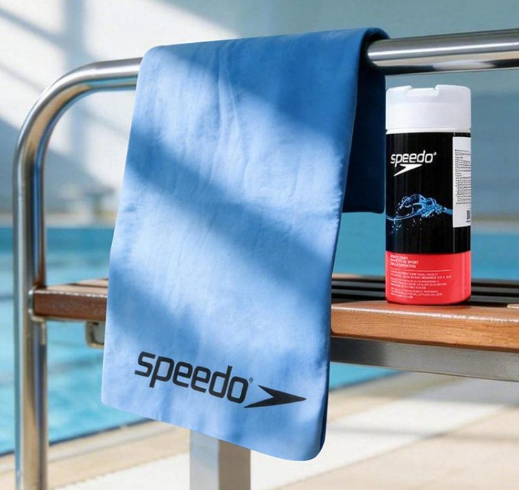 速比涛 Speedo 快干运动毛巾由高吸水性合成材料聚乙烯醇(PVA)制成,无毛絮,快速吸水,只要用力拧干,它就能立即恢复约 90% 的吸水能力,用于游泳后快速擦干身体,也可用于运动后擦汗。