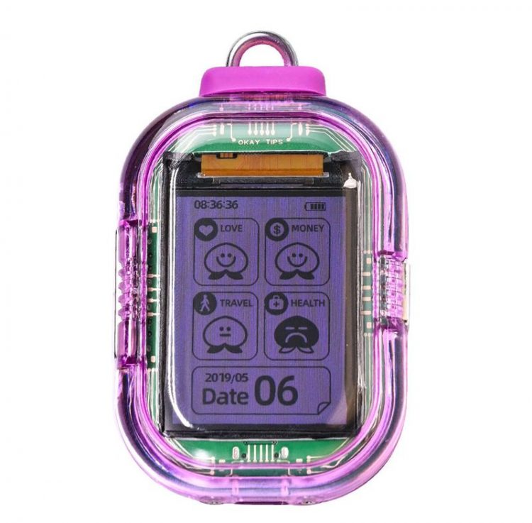 流行周日 POP SUNDAY Okay 锦囊赛博电子抽签机是一款时尚挂件,复古传呼机造型设计,外观圆润、色彩丰富,挂在背包、手机或腰间作为点缀,物理按键进行“抽签”,随机显示今日运势、建议或调侃式的语句(例如:“OKAY”、“不 OK”、“宜搬砖”、“忌emo”等),即时、解压,为焦虑的年轻人提供心理暗示和情绪出口。