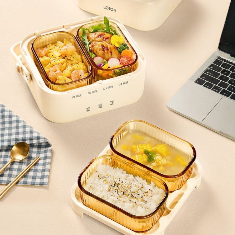 加热饭盒采用高硼硅玻璃内胆,插电加热、保温,支持预约,适合用作午餐便当盒。