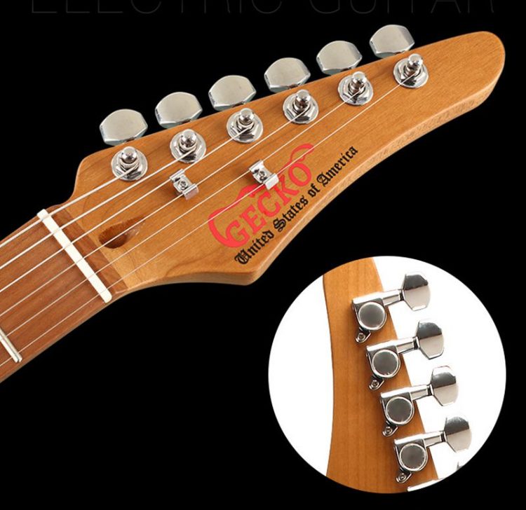 壁虎 GECKO 电吉他外形致敬经典的 ST(Stratocaster) 型、TL(Telecaster) 型以及 LP(Les Paul) 型,易上手,适合初学者使用。