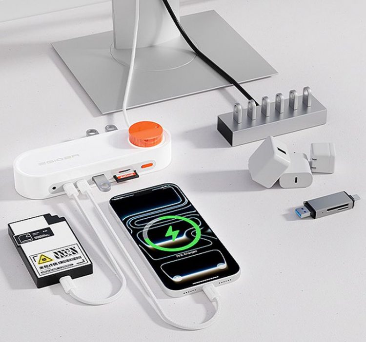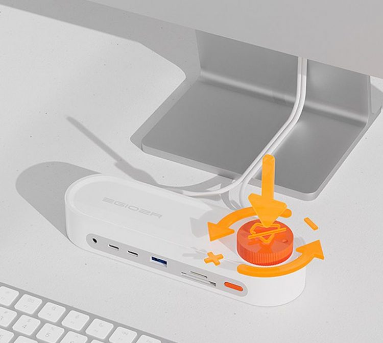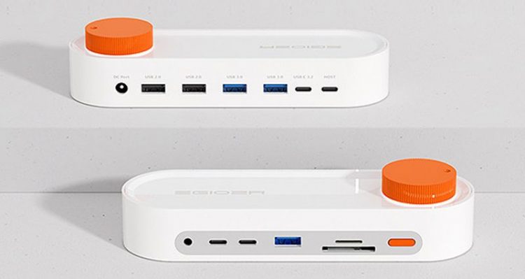 异泽 EGIOZR 12合1 桌面拓展坞是一款专为追求“桌面美学(桌搭)”和“快捷操控”的用户设计的创新型外设,铝合金外壳,兼具功能和美观,旋钮控制音量,12个拓展接口,方便连接外设。