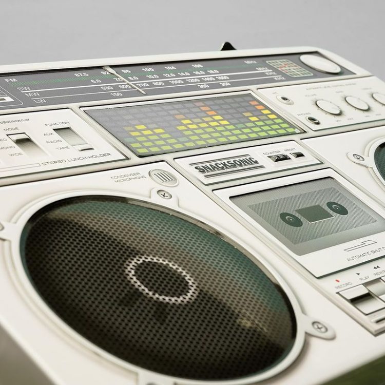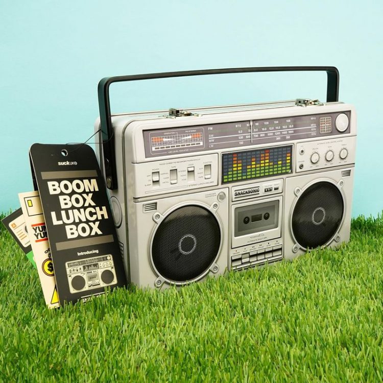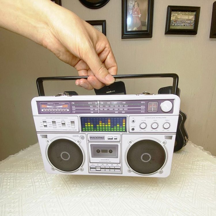 SUCK UK 录音机造型午餐盒采用复古 80 年代型手提收录两用机造型,外壳使用精致的浮雕工艺,模拟了喇叭网罩、调频刻度盘、按键和卡带插槽的立体质感,配备提手和金属搭扣,内部可收纳三明治、水果、零食等食品,用作饭盒。也可用作桌面收纳盒。