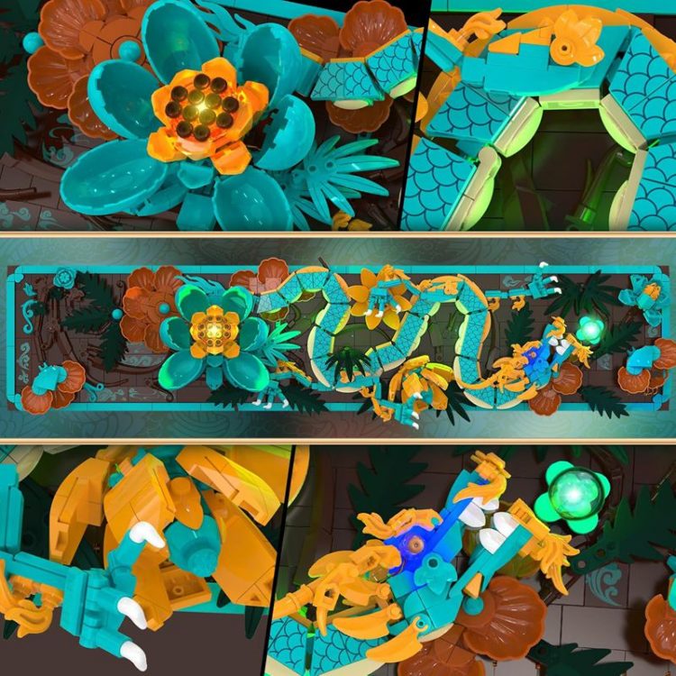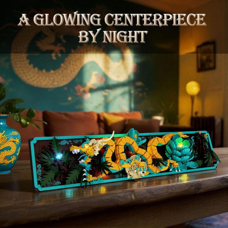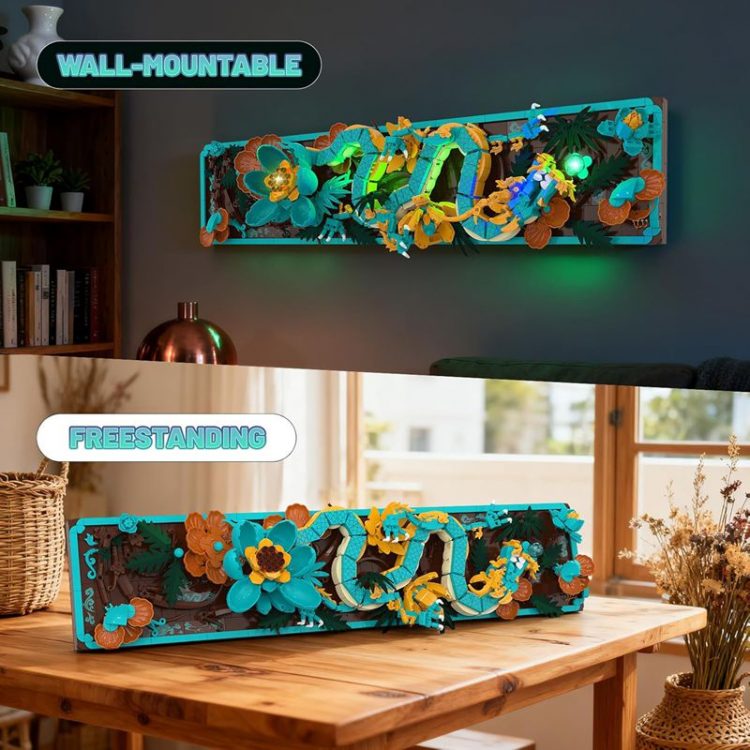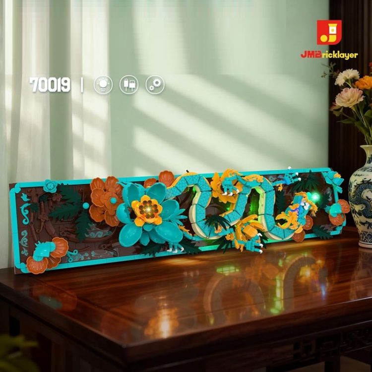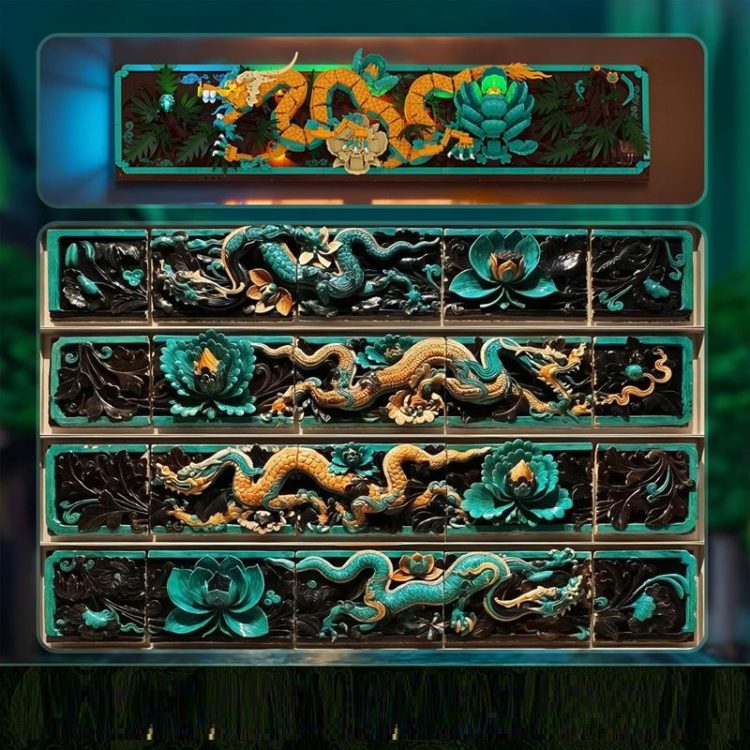 JMBricklayer 神话中国龙壁拼装积木套装灵感源自经典的琉璃龙壁,展现了神龙在云海中穿梭的姿态,需要自己 DIY 组装,完成后,是一件装饰艺术品,内置暖色调 LED 灯光,可设置为常亮模式或光感模式,照亮龙珠、龙眼和莲花,用作墙壁挂饰,也可用作桌面、家居摆件,传递出平衡、力量和宁静的东方韵味。
