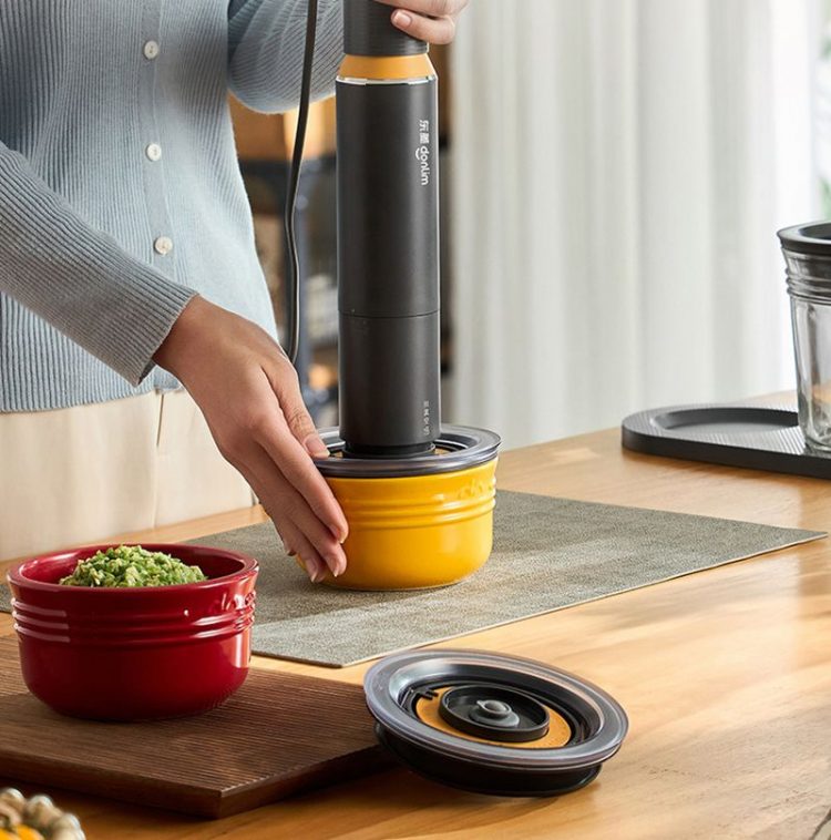 东菱 Donlim 抽真空保鲜佐料机既是一个绞肉、粉碎机,还集成了真空泵功能,可通过接口连接真空收纳盒或者真空袋子,在处理食材的同时,便可抽真空,延长食材的保鲜期。