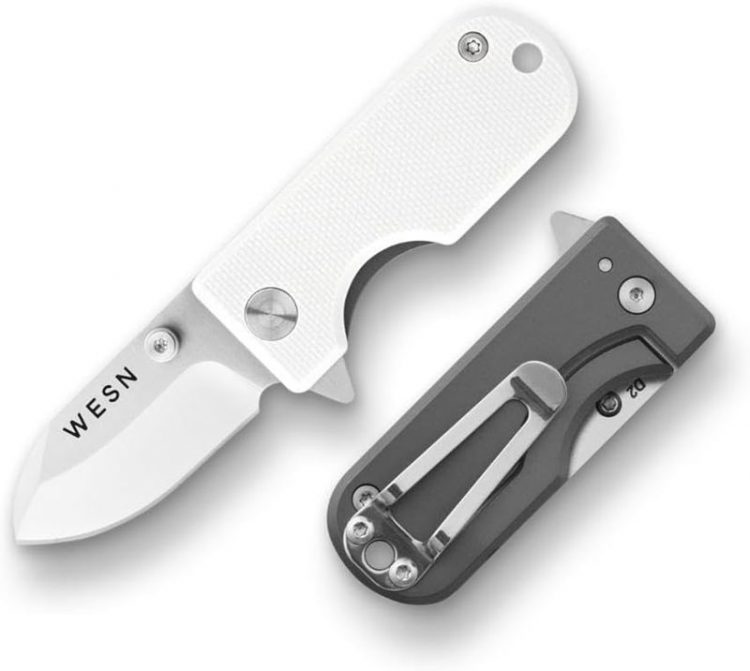 WESN Microblade 迷你小折刀采用极简设计,可以挂在钥匙扣上随身携带,D2 钢刀身,钛合金刀柄,适合开箱,也用于日常切割。