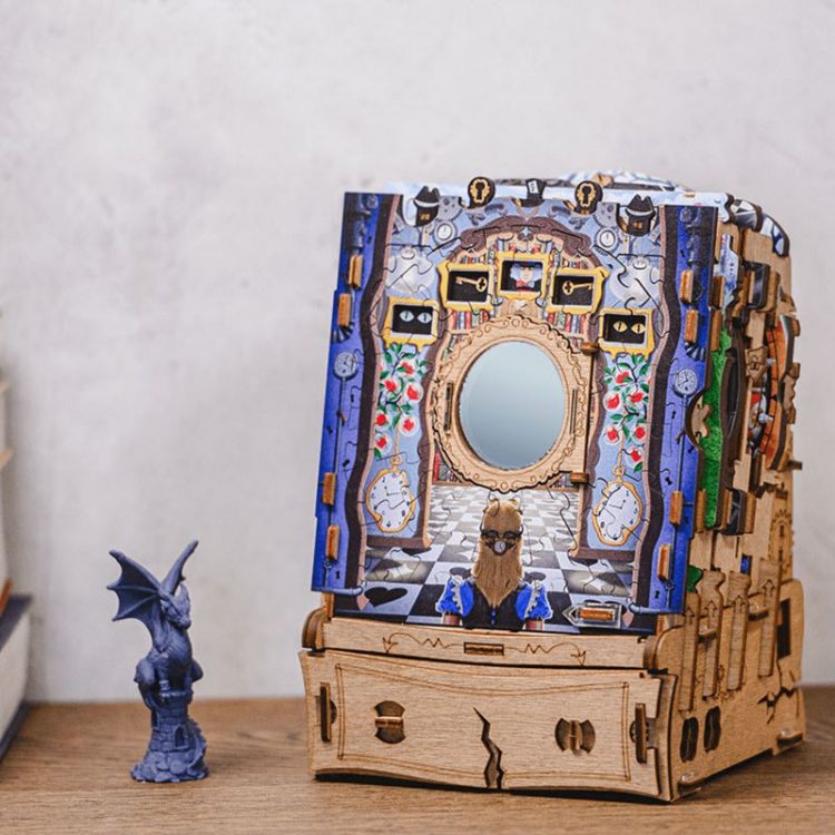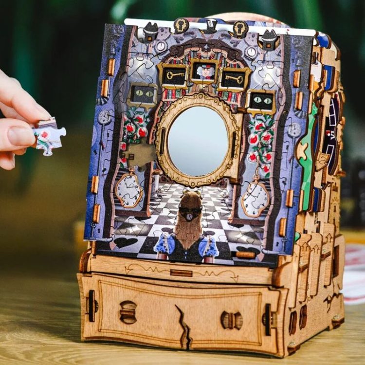 iDventure Cluepuzzle 爱丽丝梦游仙境拼图套装适合所有年龄段的爱好者,包含四个拼图框架和四套设计精美、形状独特的拼图块,灵感源自《爱丽丝梦游仙境》——白兔先生、柴郡猫、疯帽子先生和其他深受喜爱的角色形象,完成后,可摆在桌面上用作时尚摆件,内设隐藏隔层,可存放现金、珠宝或小秘密。